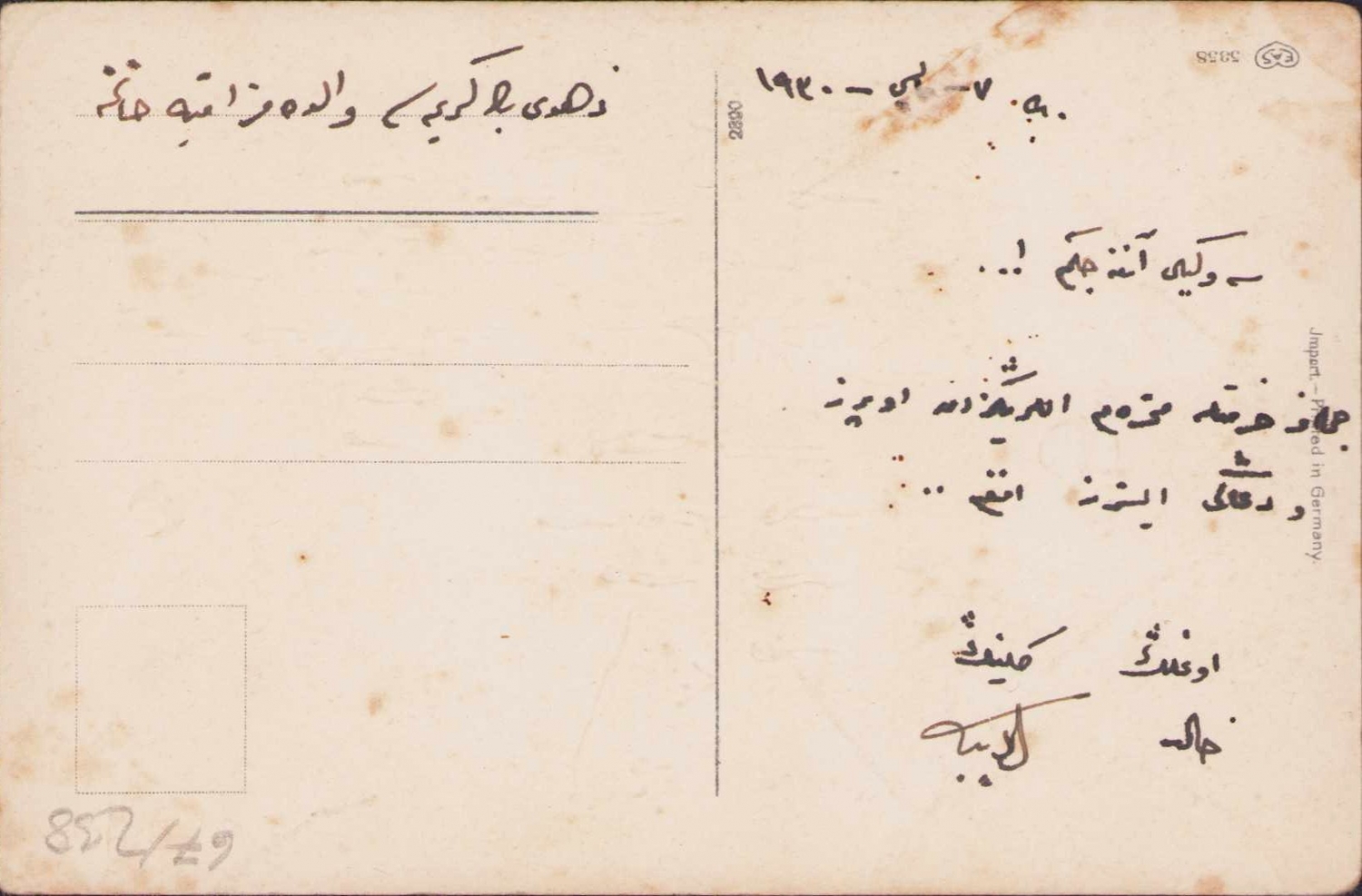 Gofre Bayram Tebrik Kartı, arkası Osmanlıca ithaflı 1930 tarihli