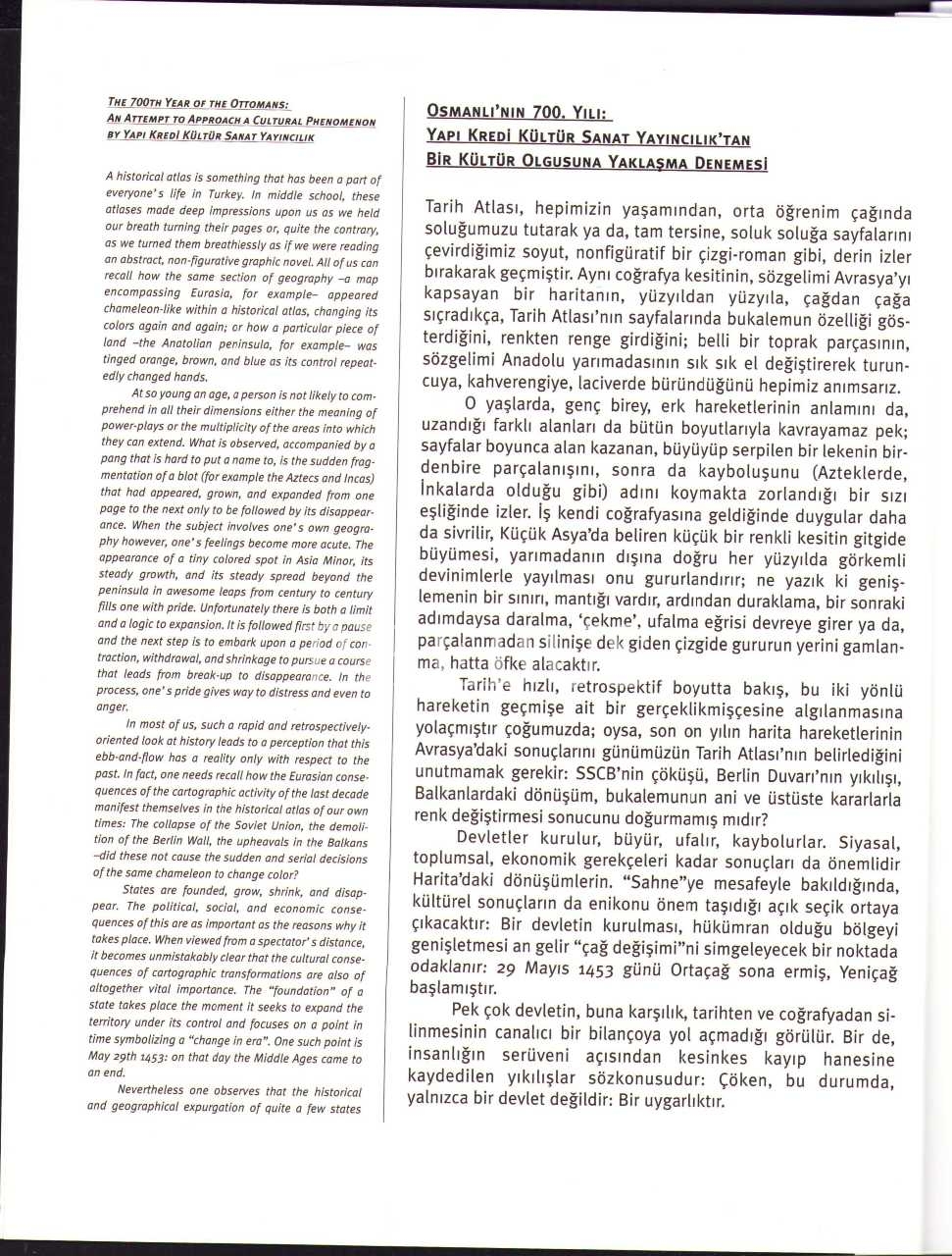 Osmanlı Gökkuşağında Yolculuk-Osmanlı Esiniyle Çağdaş Türk Sanatı, haz. Veysel Uğurlu, Yapı Kredi Kültür Sanat Yay., İstanbul 1999, 104 s., 23x29 cm