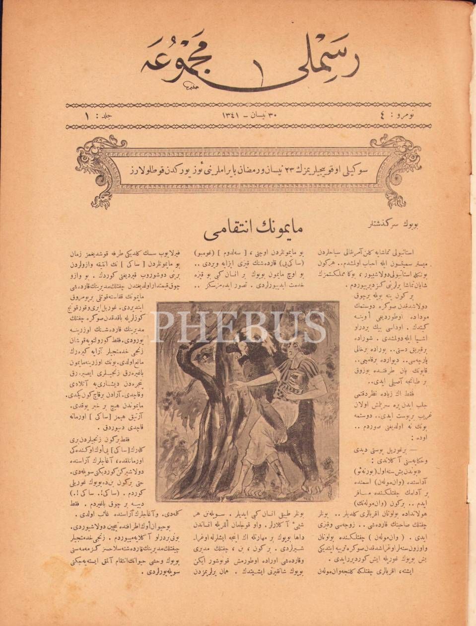 Osmanlıca Resimli Mecmûa 4. sayı, 30 Nisan 1341, 23x31 cm, kapağı yıpranmış haliyle