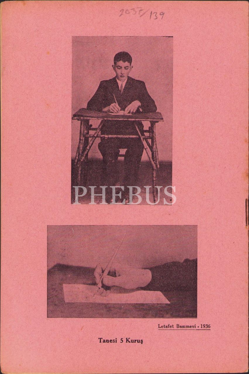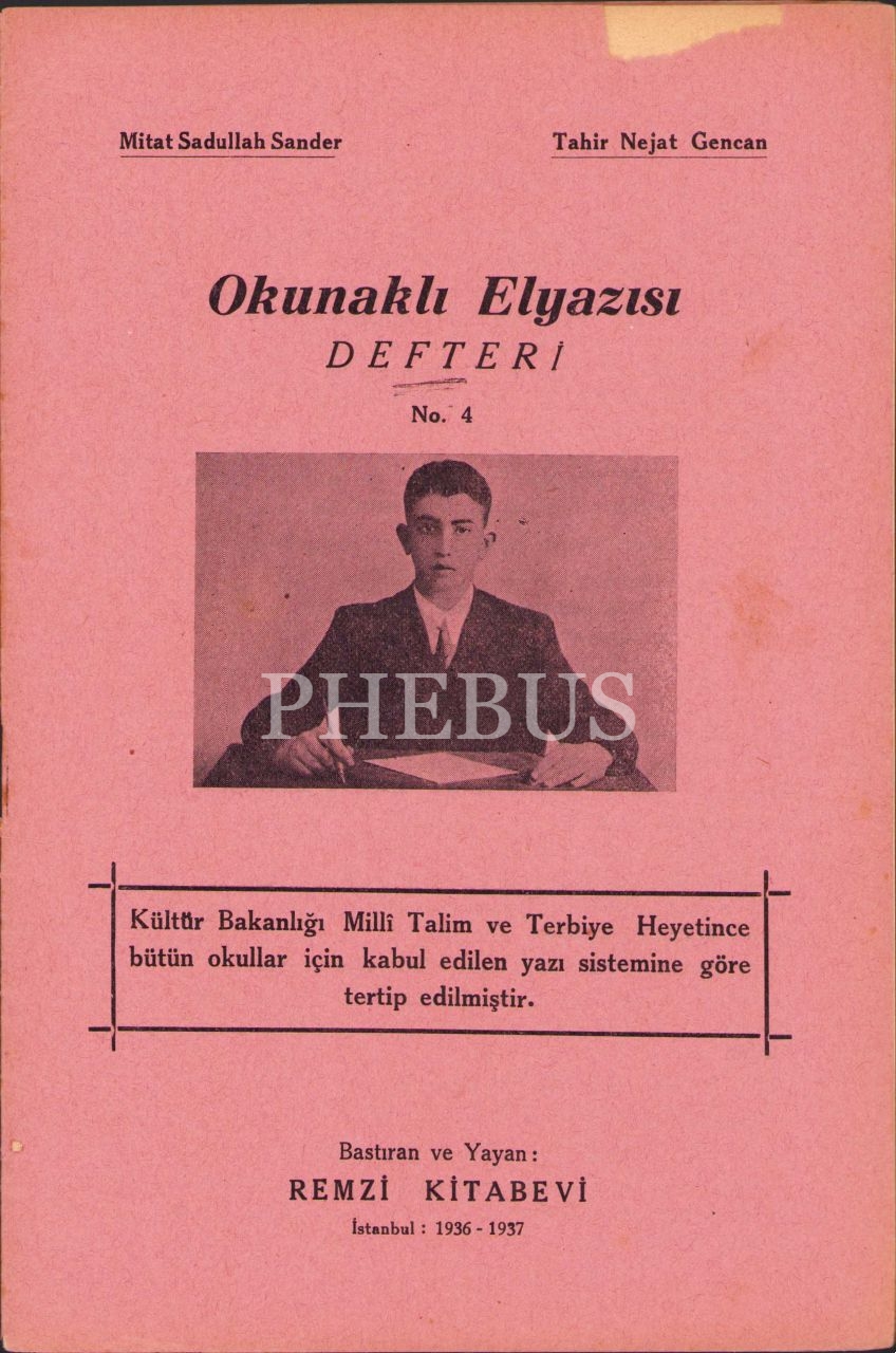 Okunaklı Elyazısı Defteri, Mitat Sadullah Sander-Tahir Nejat Gencan, Remzi Kitabevi, İstanbul 1936-37, 16 s., 15x22 cm, ön kapak üstten yırtık haliyle