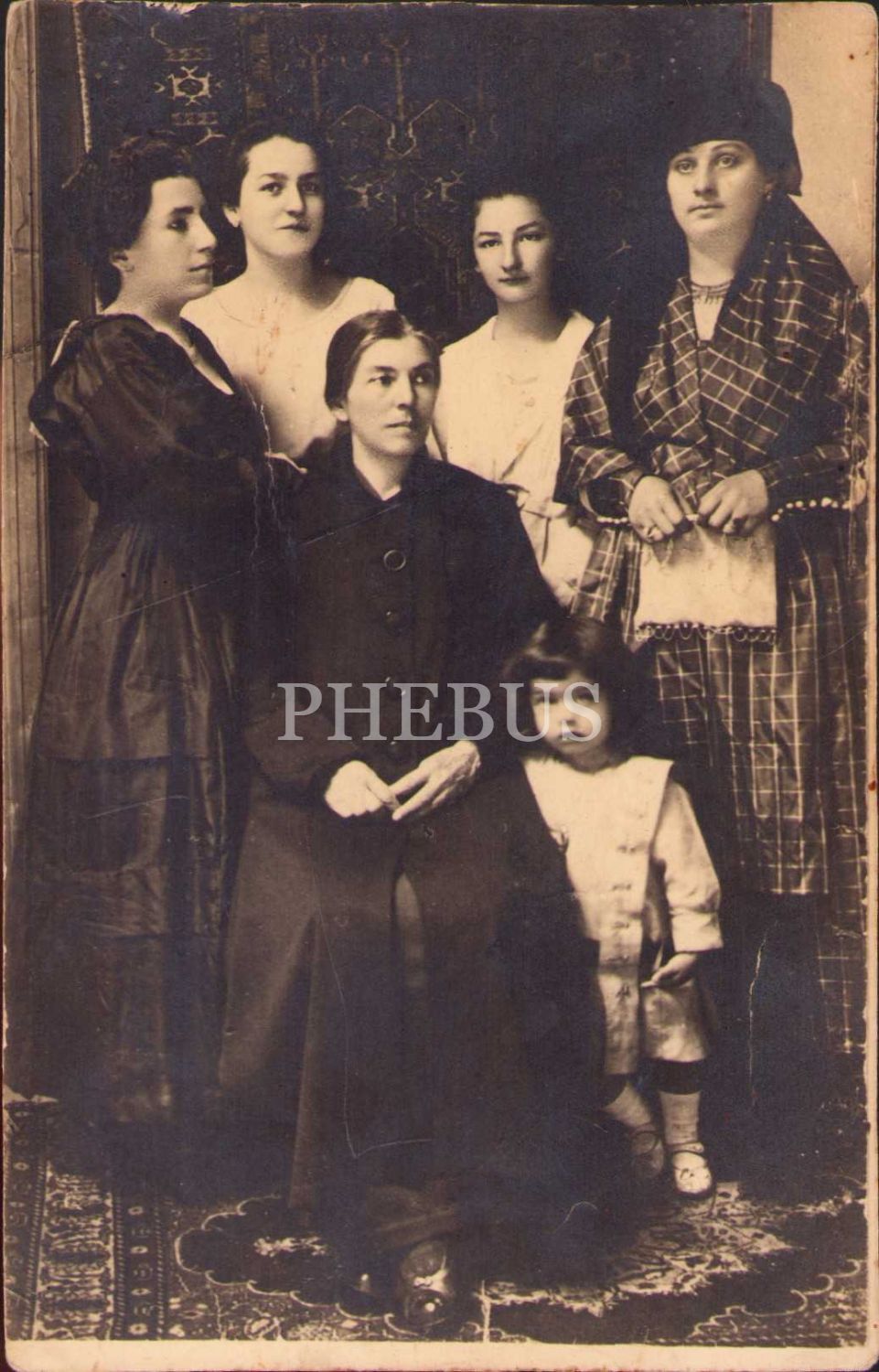 Hanımlar ve çocuk hatıra fotoğrafı, yıpranmış haliyle