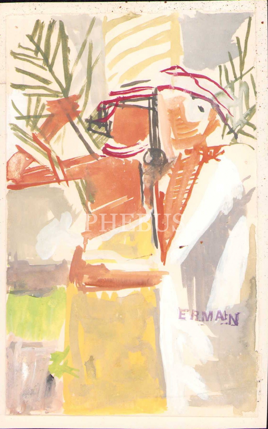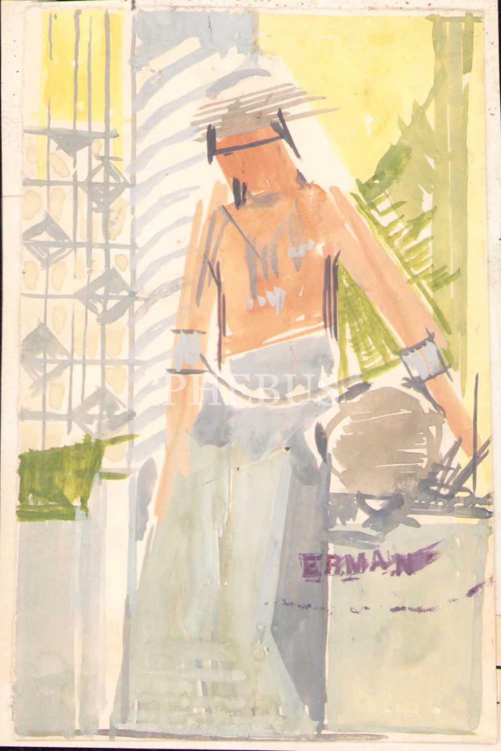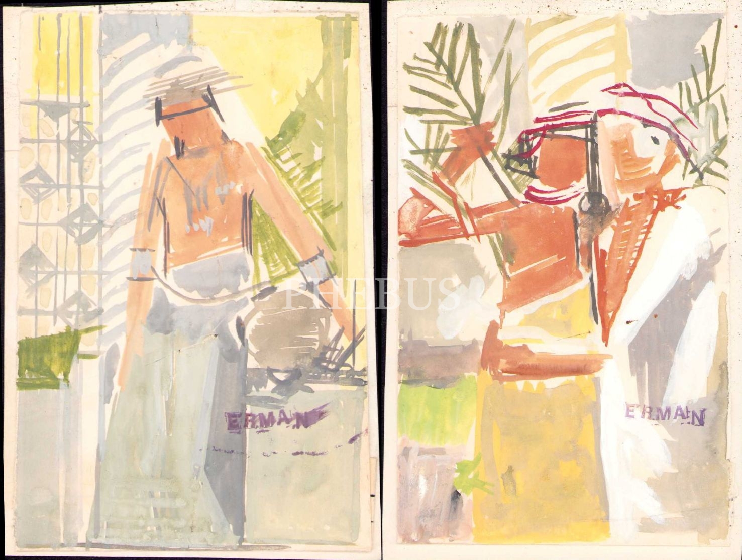 "ERMAN" damgalı 2 adet suluboya çalışması, 9x14 cm