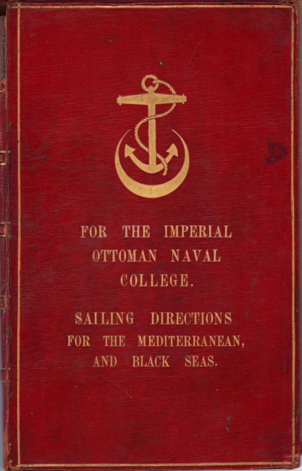 Osmanlı Donanma Okulu, Akdeniz ve Karadeniz için Yelken Talimatları yazılı içi boş deri kırmızı cilt, Osmanlı denizci çapalı, 15x21cm