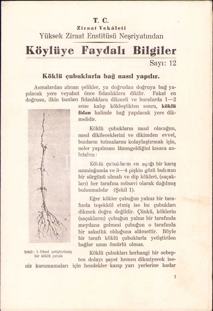 T.C. Ziraat Vekâleti'nden Köylüye Faydalı Bilgiler, Yüksek Ziraat Enstitüsü Basımevi, Ankara 1938, 7 s., 17x25 cm