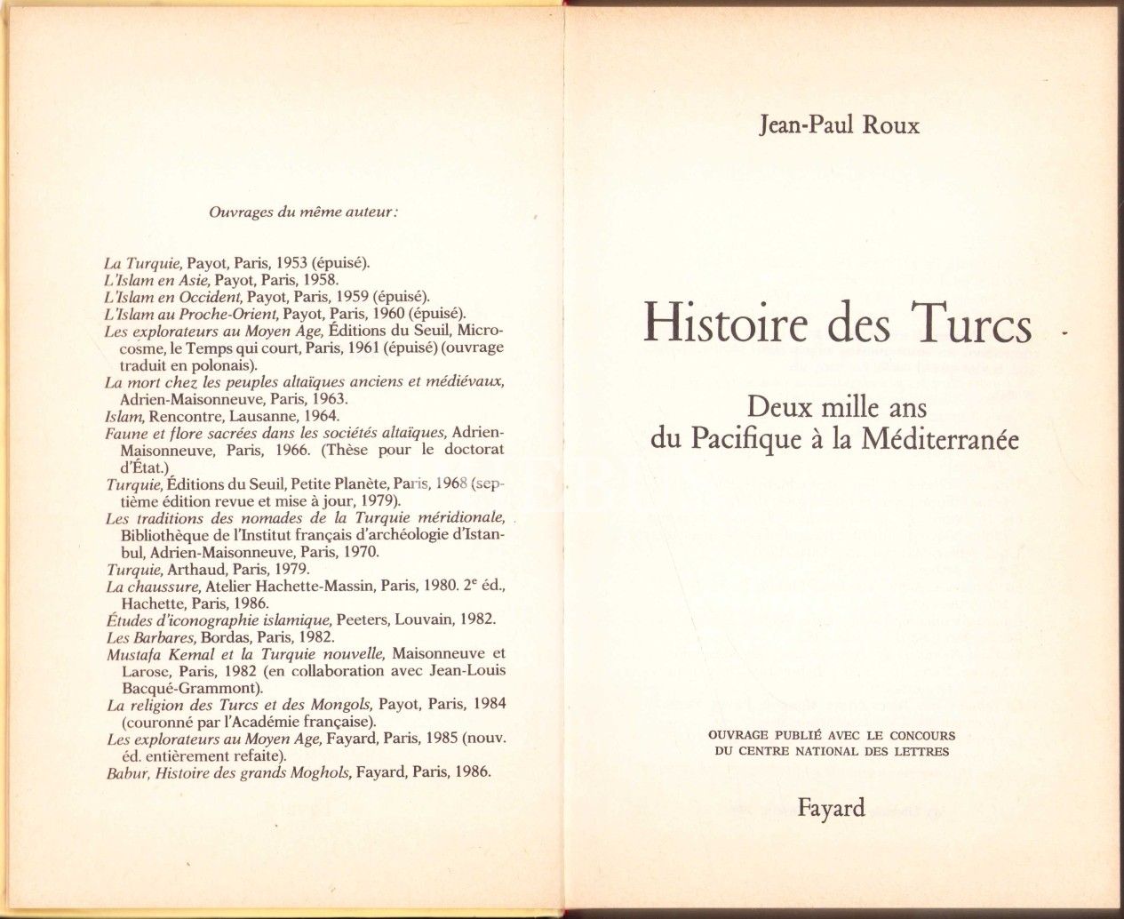 Fransızca Histoire des Turcs, Jean-Paul Roux, Fayard, 1984, 389 s., 14x22 cm, cildi hafif yıpranmış haliyle