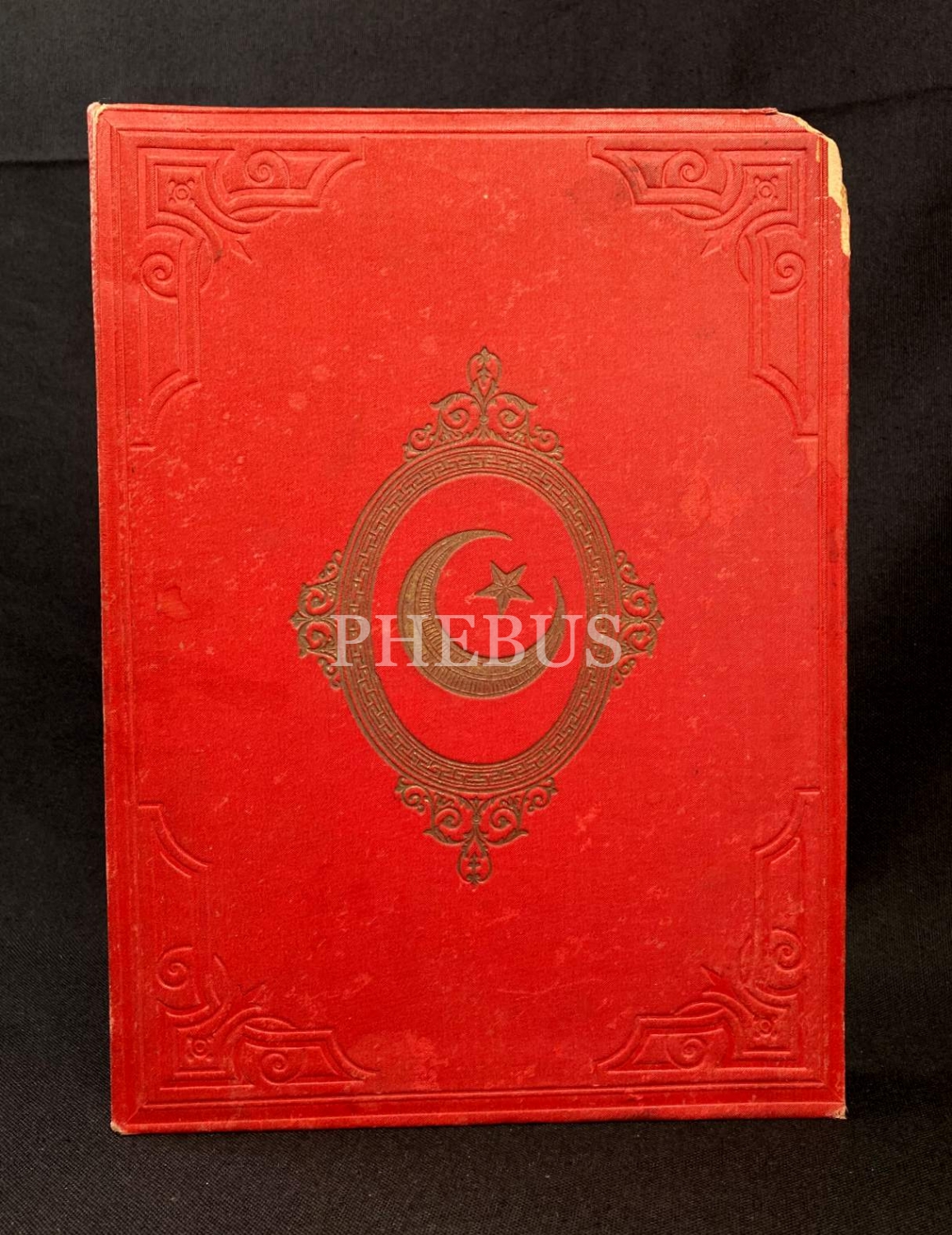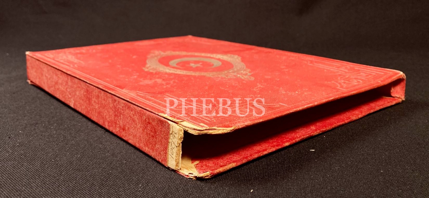 Osmanlı tuğralı ve ay yıldızlı ciltli kitap kabı, 19x26 cm, bir kenarı yıpranmış haliyle