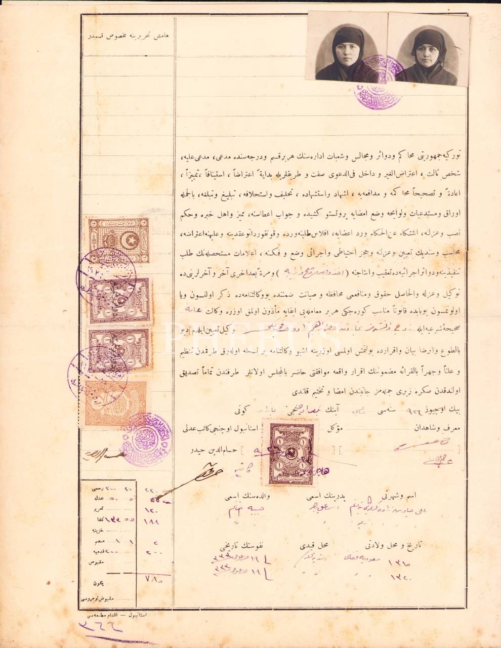 Osmanlıca fotoğraflı vekaletname, 1926 tarihli, 25x32 cm, lekeli haliyle