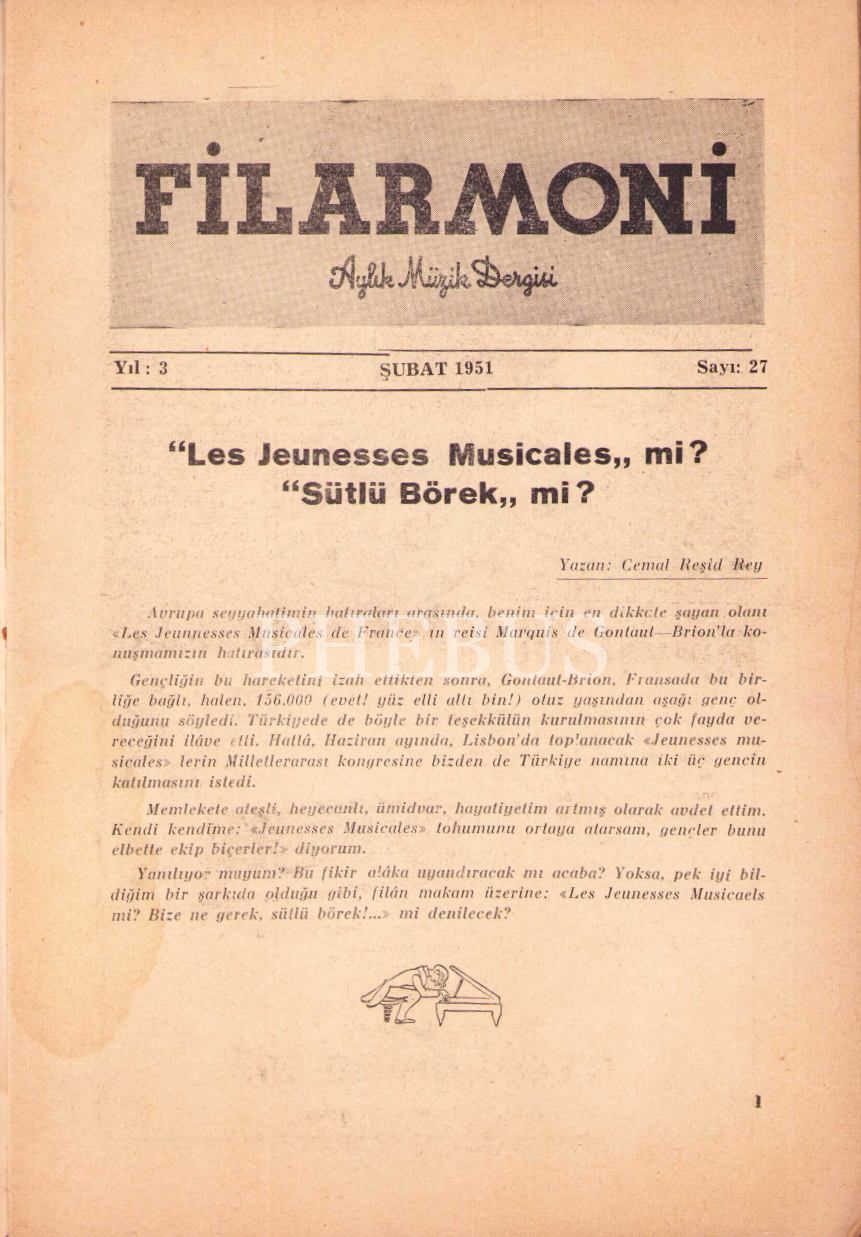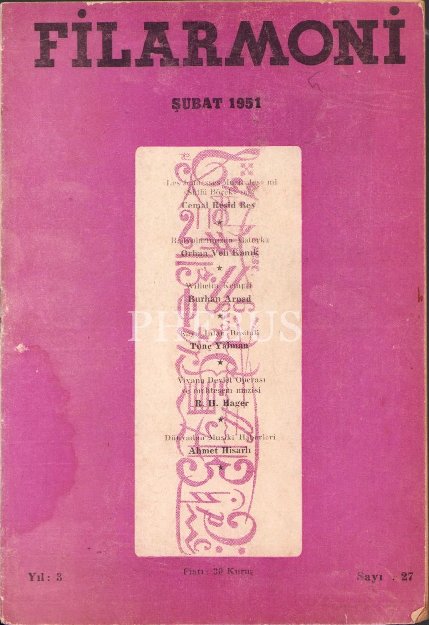 Filarmoni müzik dergisi 27. sayı, Şubat 1951, 16x24 cm, kapak sayfası yıpranmış haliyle