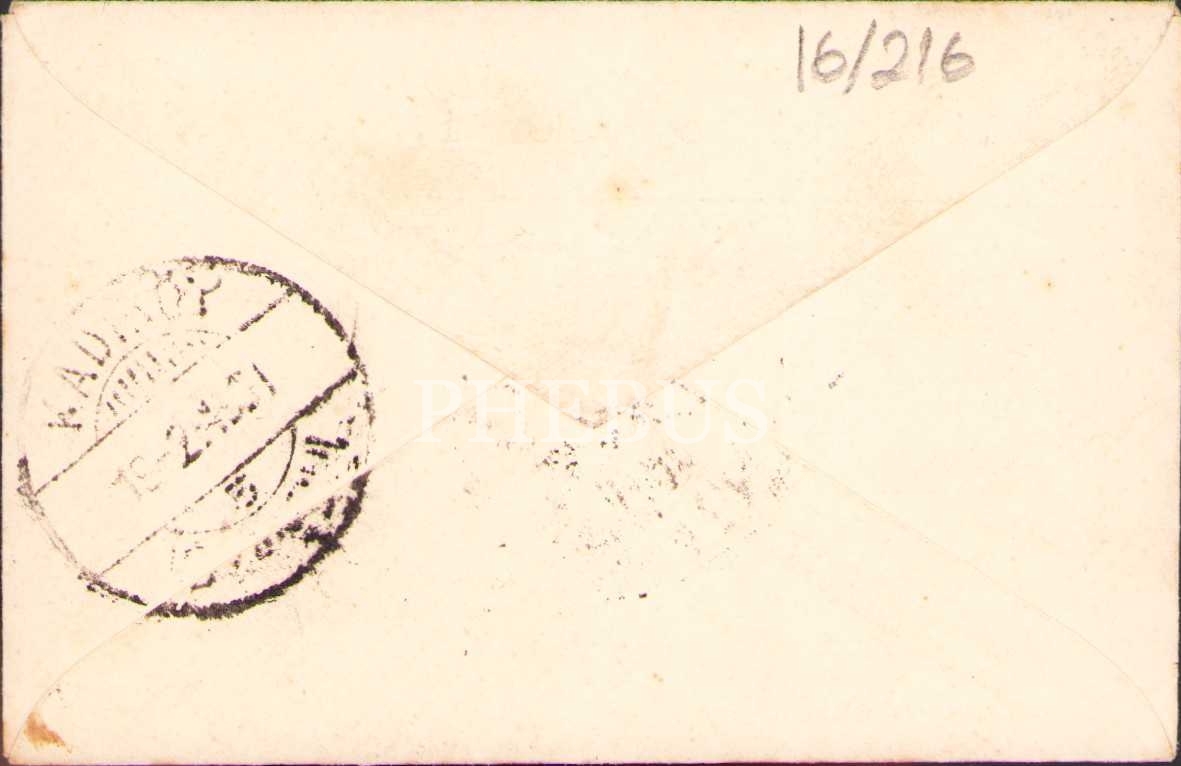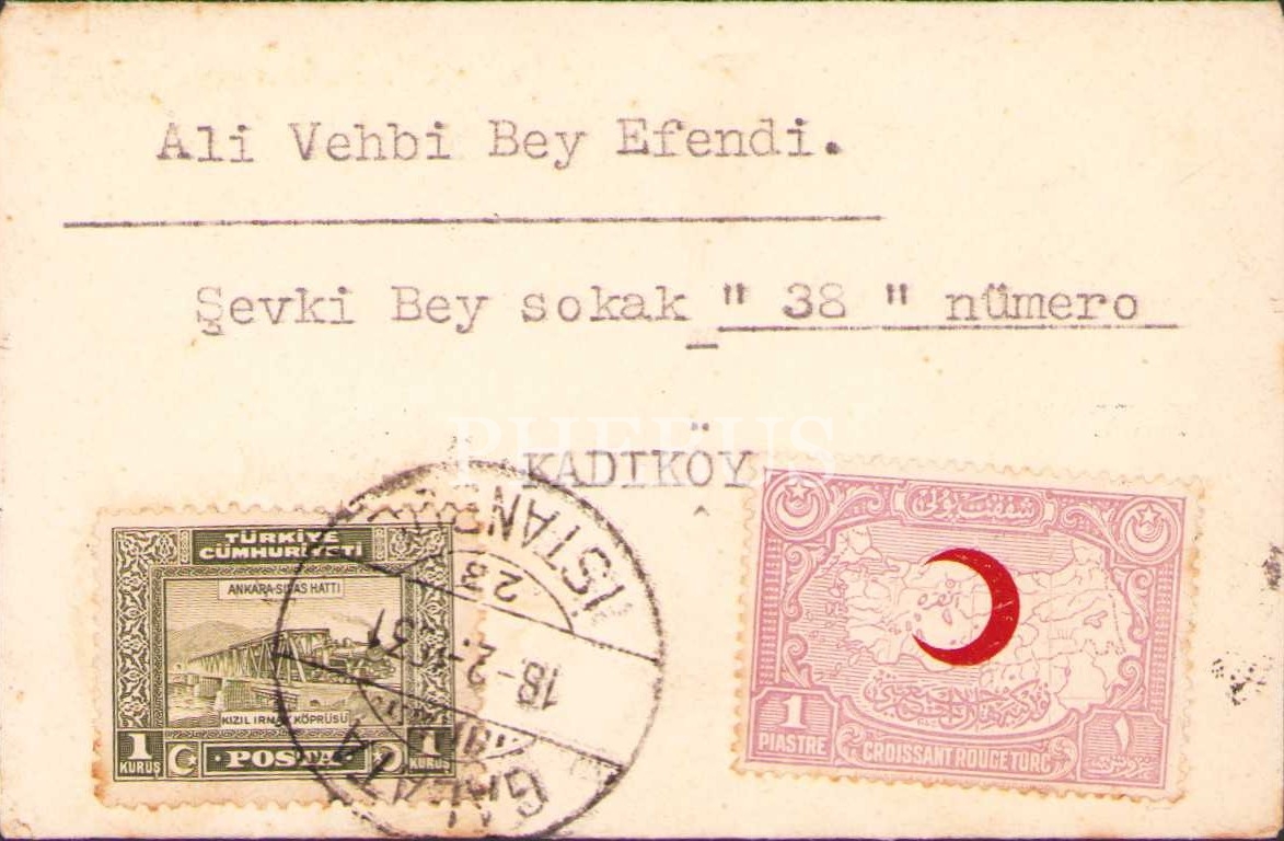 Ali Vehbi Bey'e gönderilen bayram tebrik kartı ve zarfı, postadan geçmiş, 6x10 cm