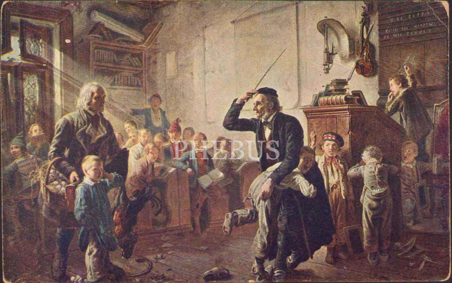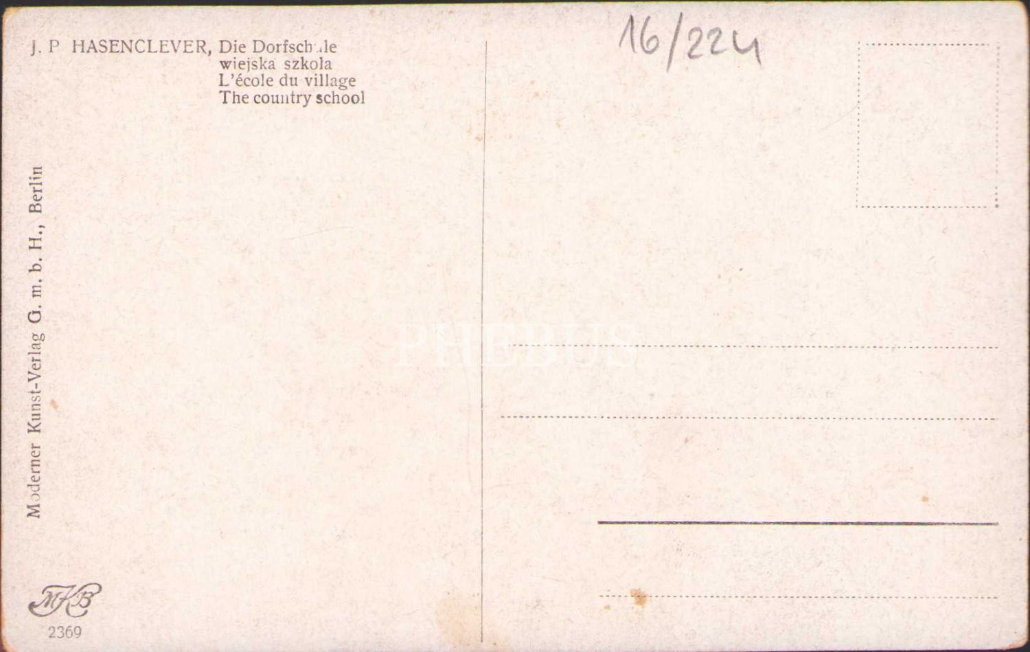 Ressam Johann Peter Hasenclever'e ait "Köy Okulu" çalışması, Berlin baskı, köşeleri yıpranmış haliyle