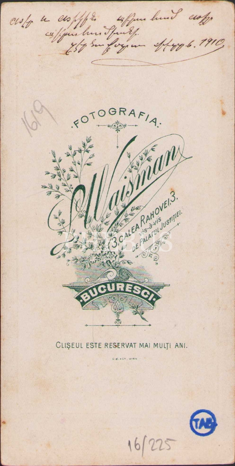 Genç hanım kabin fotoğrafı, Foto L. Waisman-Bucuresci/Romanya, 7x14 cm