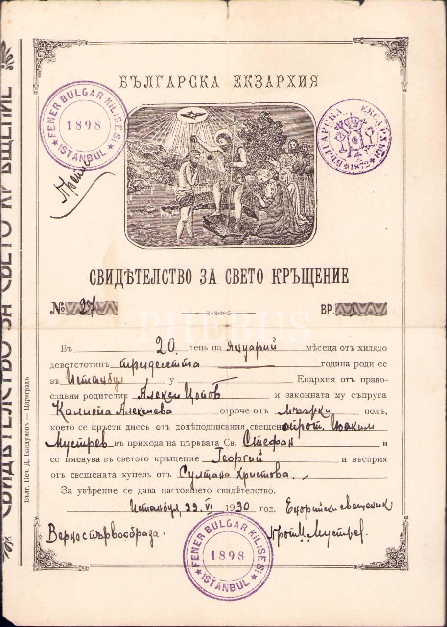 Fener Bulgar Kilisesi-İstanbul damgalı Rusça belge, 1930 tarihli, 19x27 cm, yıpranmış haliyle