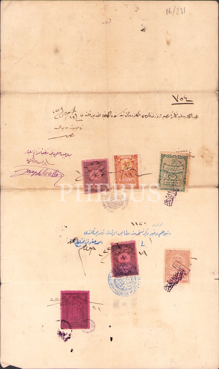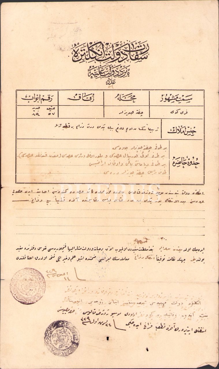 Osmanlıca İngiltere Büyükelçiliği antetli tarla tapu senedi, Feriköy/İstanbul 1329, 22x37 cm