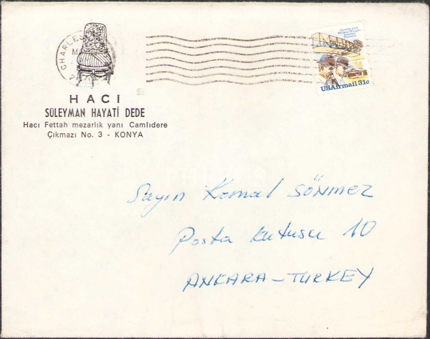Hacı Süleyman Hayati Dede-Konya antetli zarf, 12x16 cm, yıpranmış haliyle