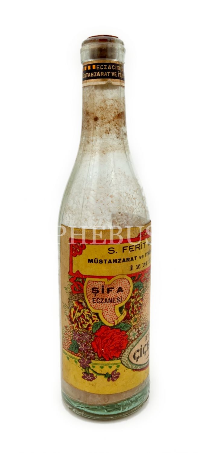 S. Ferit Eczacıbaşı-İzmir etiketli Ferit Çiçek Suyu şişesi, 5x6x21 cm