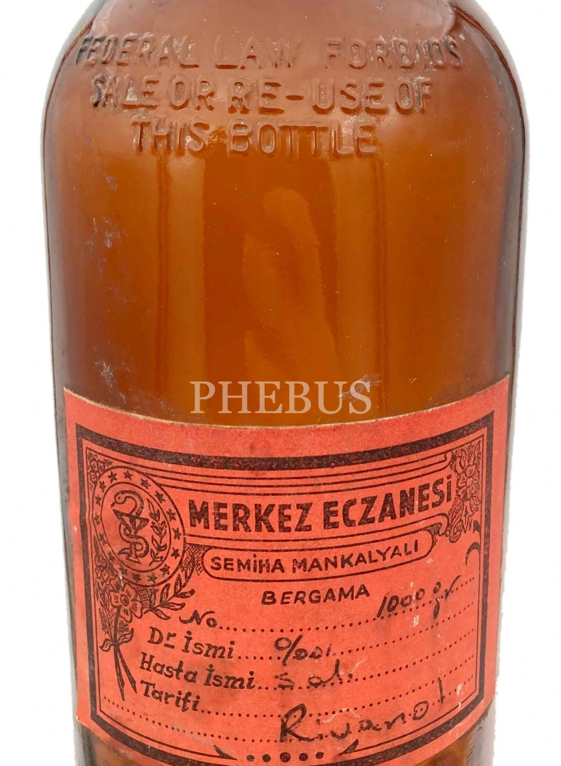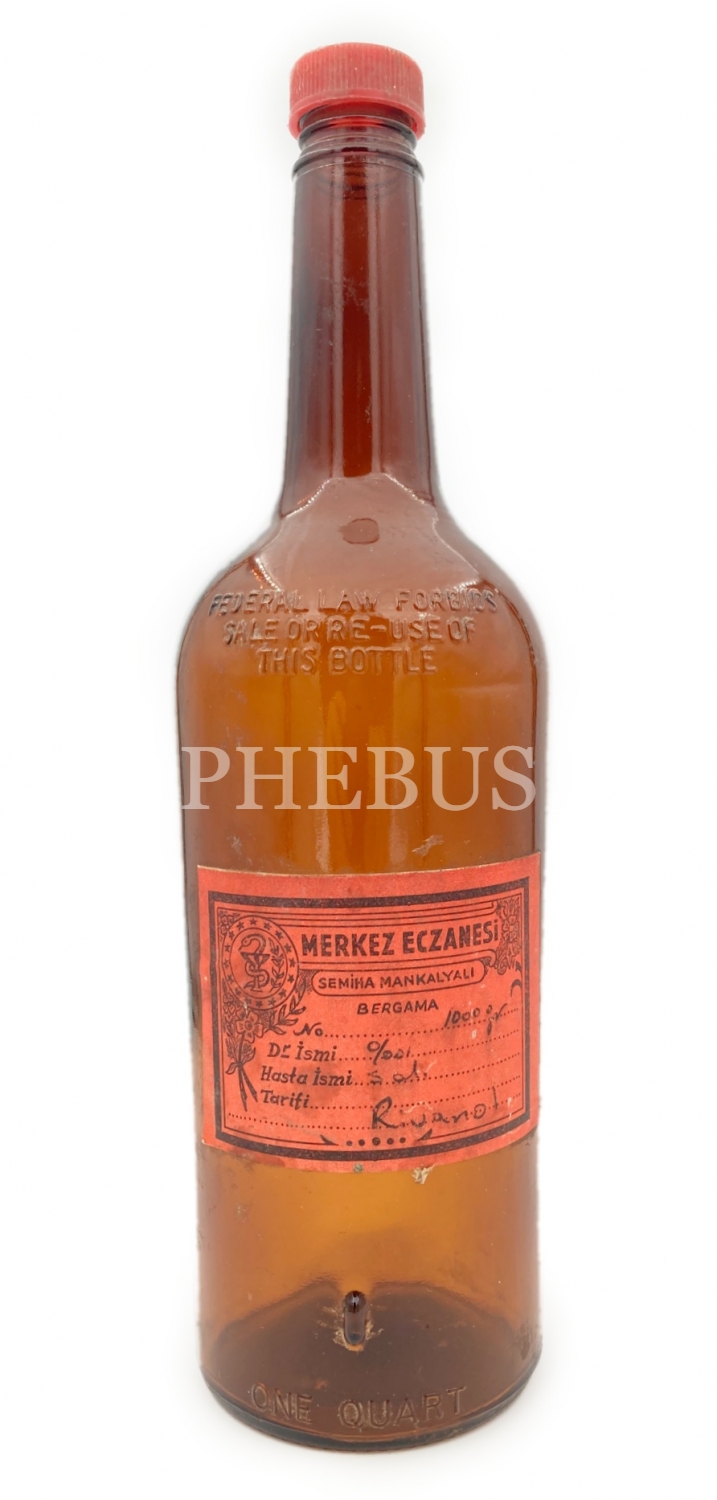 Bergama [İzmir] Merkez Eczanesi-Semiha Mankalyalı etiketli şişe, 7x11x29 cm