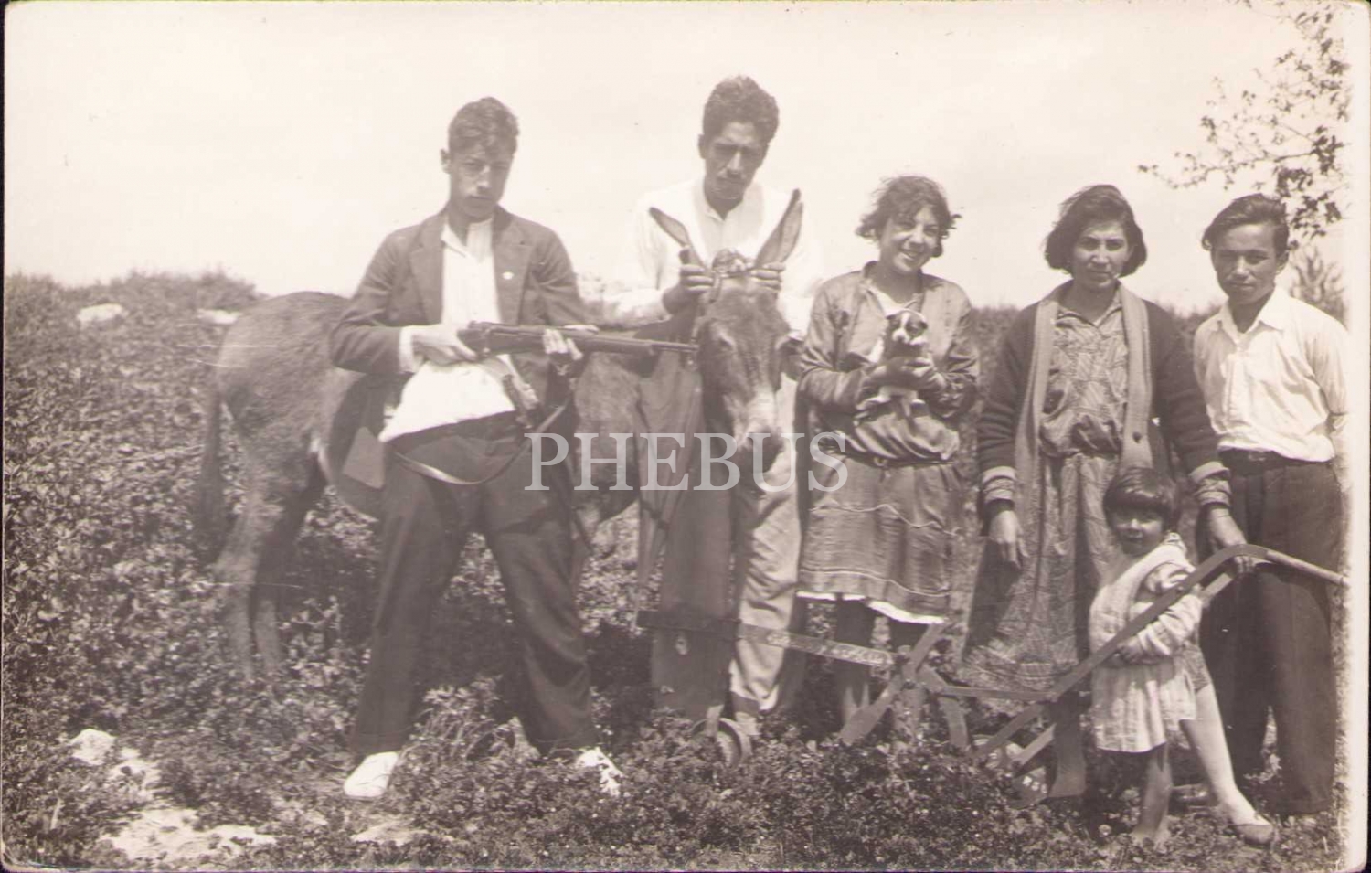 Çiftlikte topluluk hatıra fotoğrafı, 1932 tarihli, arkası Osmanlıca yazılı