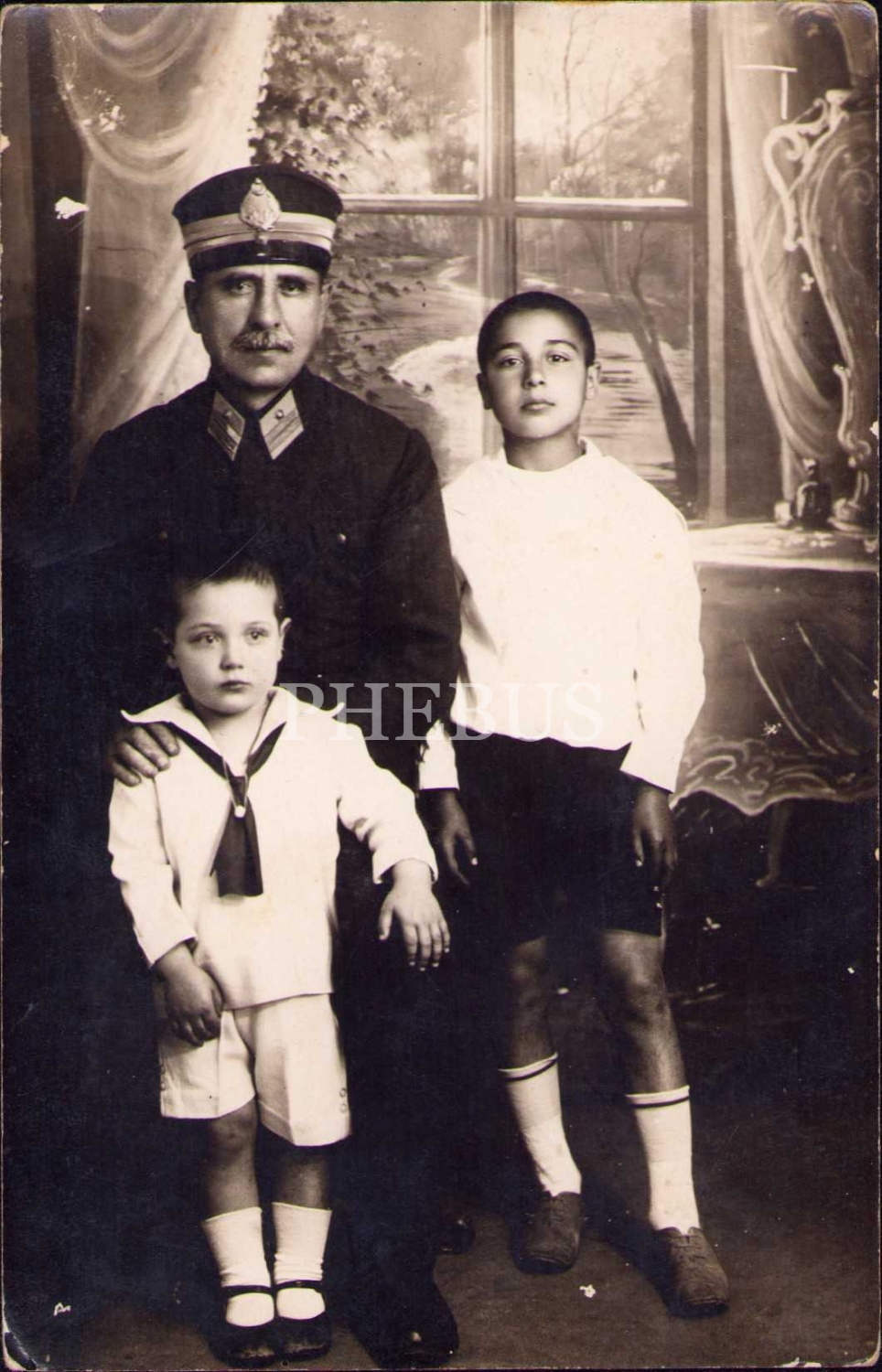 Subay ve iki çocuğun hatıra fotoğrafı, kenarları yıpranmış haliyle