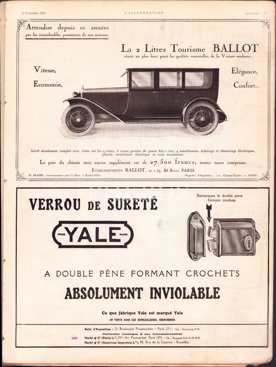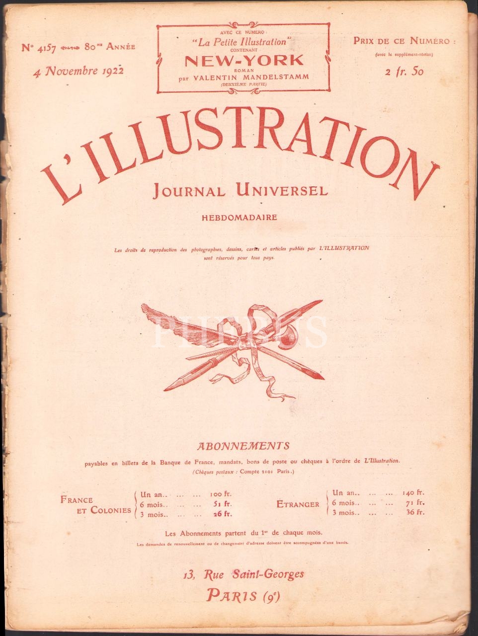 Fransızca L'Illustration dergisi 4157. sayı, 4 Kasım 1922, 29x39 cm, ön ve arka kapak ayrık haliyle