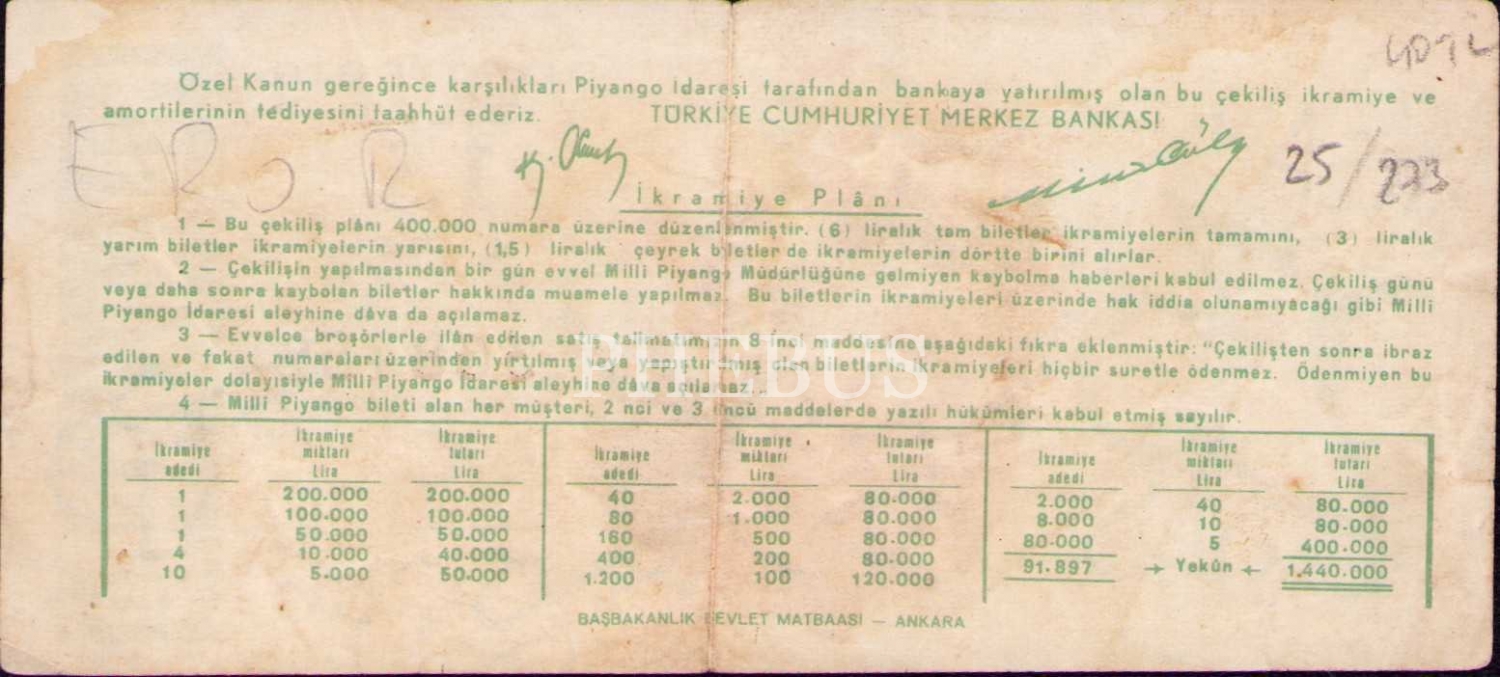 Millî Piyango, 23 Nisan 1948, 1/4 bilet, Ç