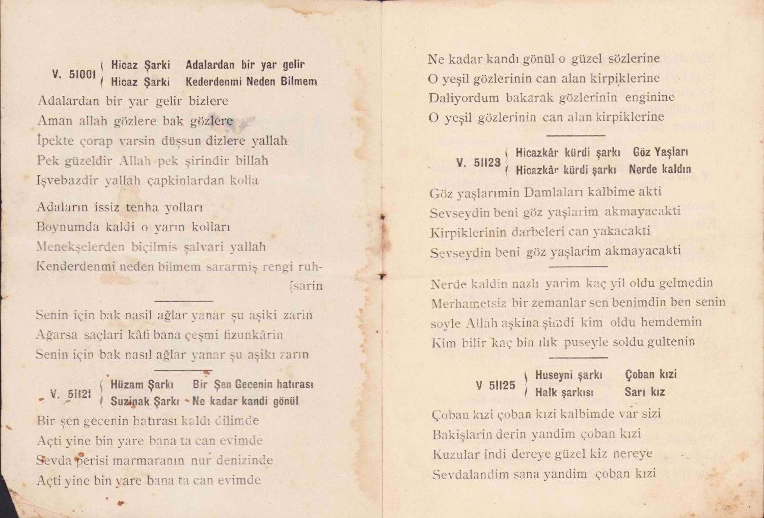 Polydor 1932 baskısı şarkı sözleri, 8 sayfa, 12x16cm