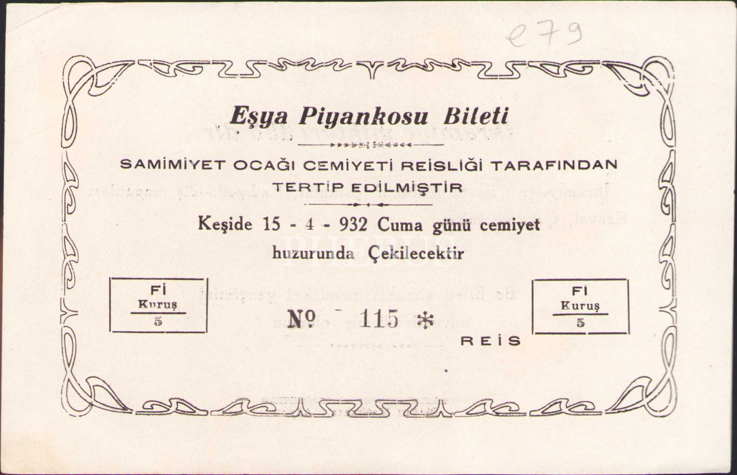 Samimiyet Ocağı Cemiyeti Eşya Piyangosu, 15.4.1932