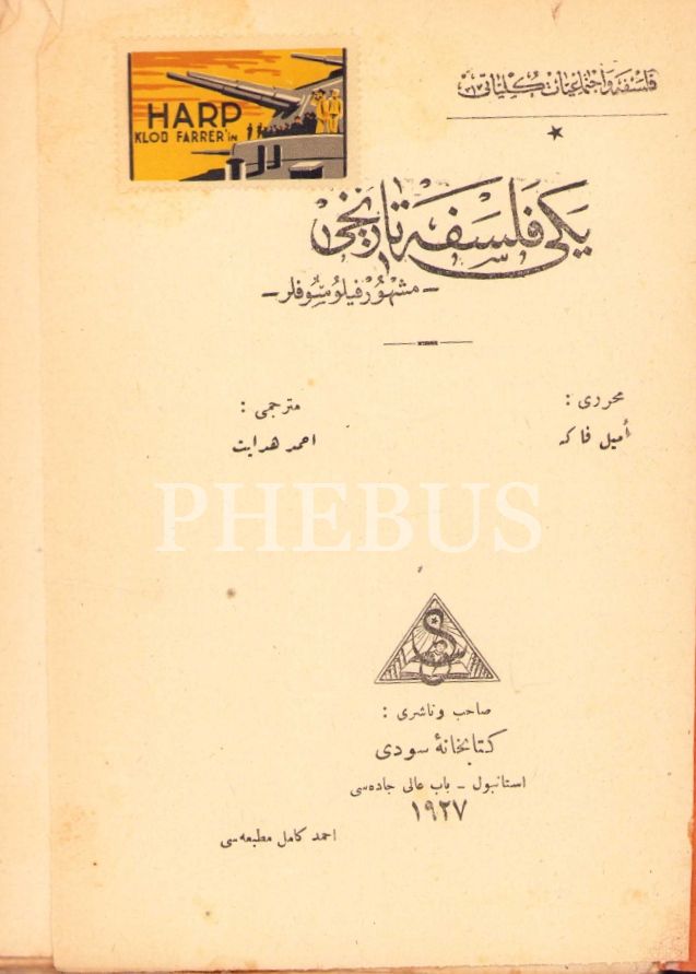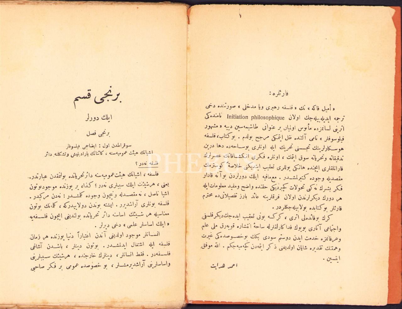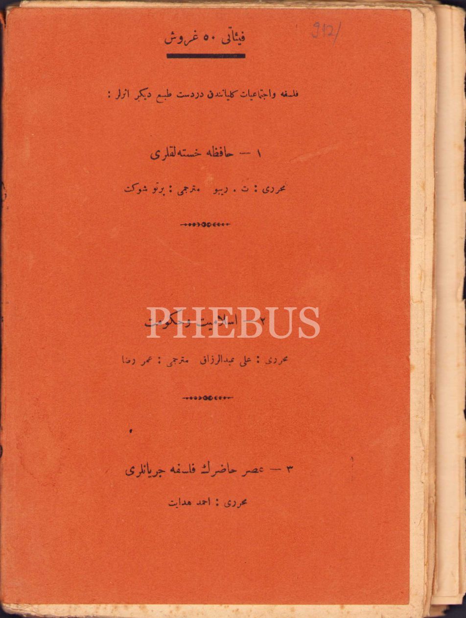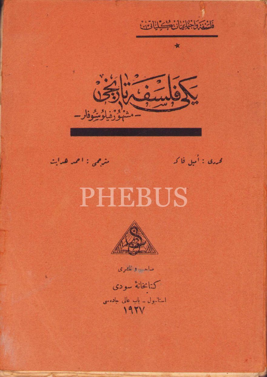 Osmanlıca Yeni Felsefe Târîhi -Meşhur Feylesoflar-, Emile Faguet, çev. Ahmed Hidâyet, Kitabhane-i Sudi, İstanbul 1927, 176 s., 15x21 cm, sayfa kenarları ve kapağı yıpranmış haliyle