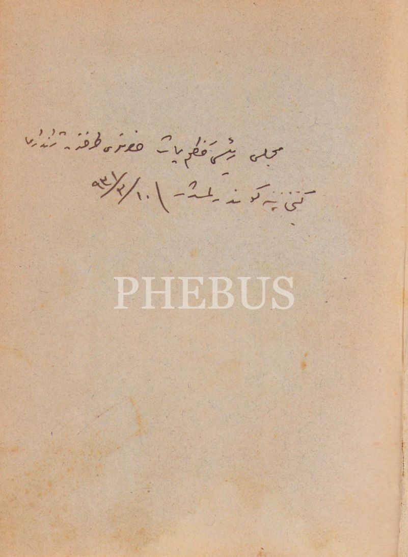 "Meclis Reisi Kâzım Paşa Hazretleri tarafından Jandarma Kitabhanesi'ne gönderilmişdir. 10.2.1921"