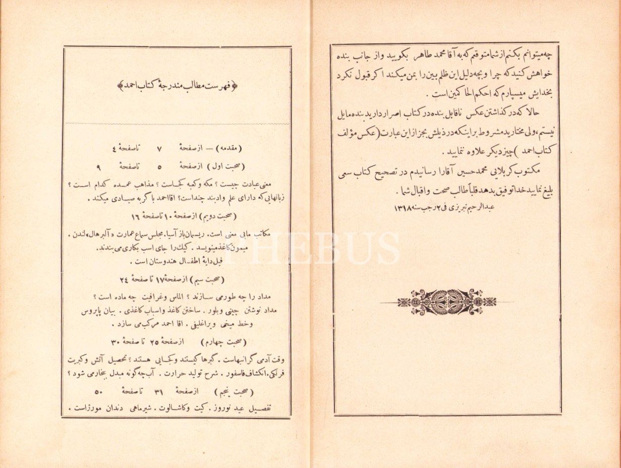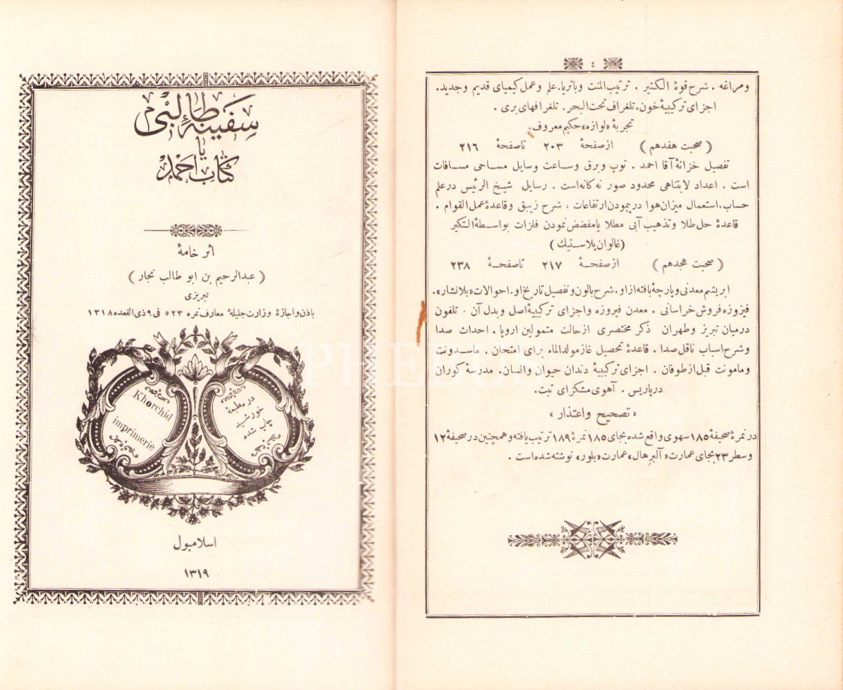 Farsça Sefîne-i Tâlibî yâ Kitâb-ı Ahmed, Mirza Abdürrahim Talibof Tebrizî, Matbaa-i Hurşid, İslambol 1319, 243 s., 17x24 cm, cildi yorgun haliyle