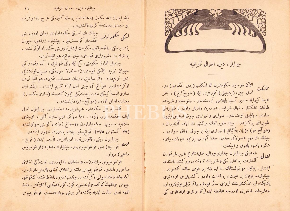Osmanlıca Resimli ve Haritalı Târîh-i Umûmî [Dünya Tarihi]-1. Cilt: Ezmine-i Kadîme [1. baskı] , Ahmed Refik, Kitabhane-i İslam ve Askerî, İstanbul 1328, 416 s., 14x20 cm, cildi yıpranmış haliyle