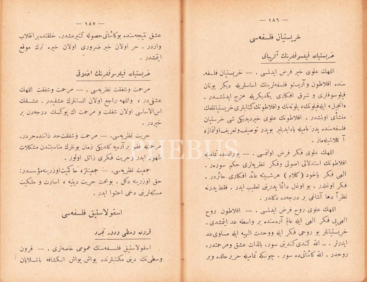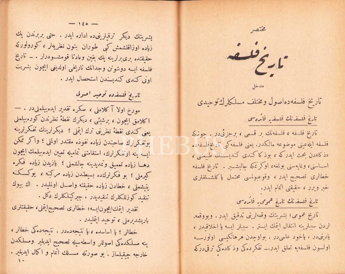 Osmanlıca Muhtasar Felsefe, Baha Tevfik, Artin Asaduryan ve Mahdumları Matbaası, İstanbul 1331, 231 s., 12x18 cm