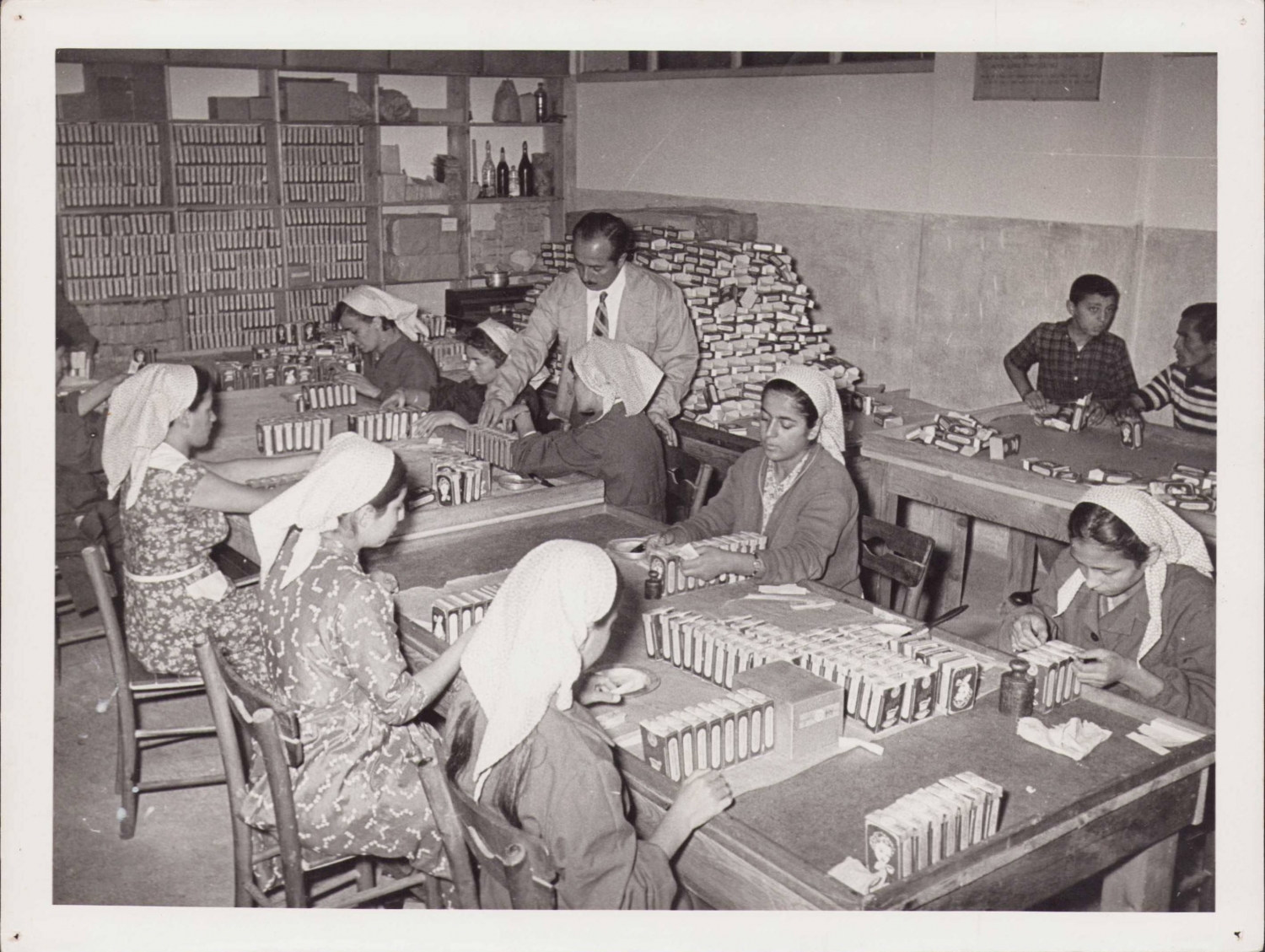Yereli imalathanede paketleme yapan kadın çalışanlar,24x18cm