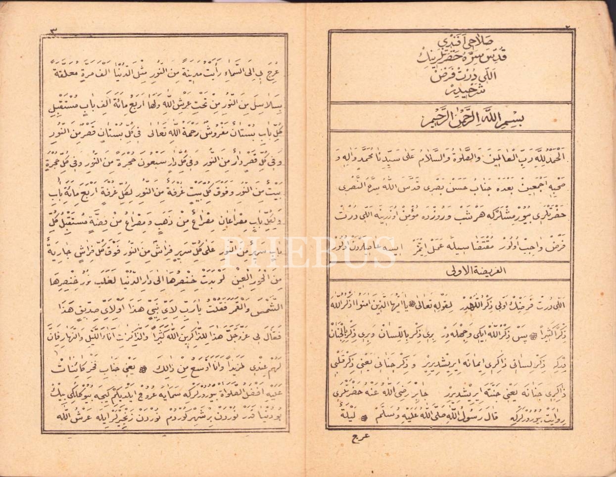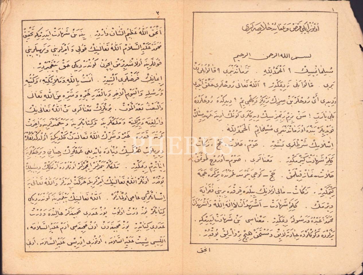 Osmanlıca 32 Farz ve Akâid Hulâsaları-Salahi Efendi'nin 54 Farz Şerhi, 8+111+32 s., 14x20 cm, ciltsiz ve kapağı yıpranmış haliyle