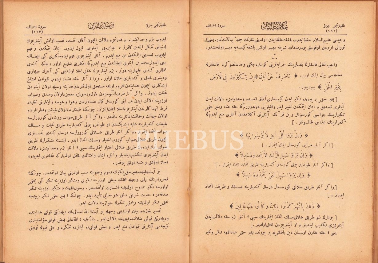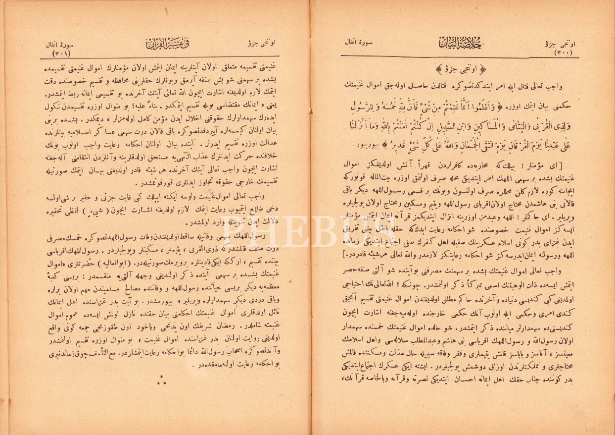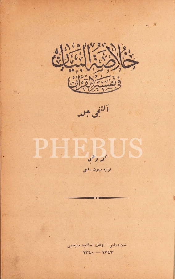 Osmanlıca Hulâsatu'l-Beyân fî Tefsîri'l-Kur'ân 6. Cild [Araf ve Enfal Suresi], Mehmed Vehbi, Evkaf-ı İslamiye Matbaası, İstanbul 1340-42, 350 s., 16x24 cm, cildi yıpranmış haliyle