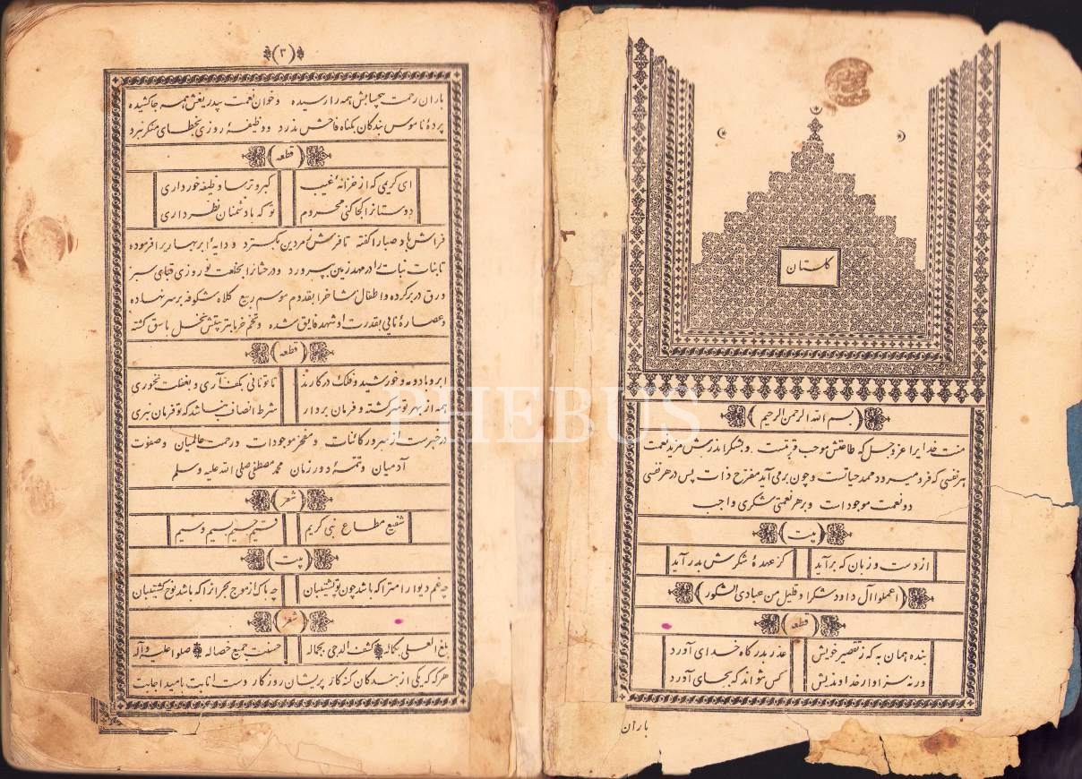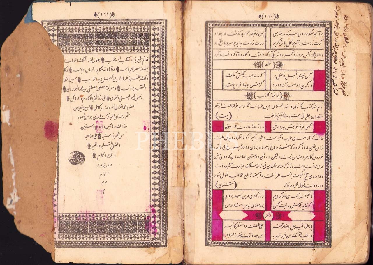 Farsça Gülistân, Sadi Şirazî, Mısır Matbaası, 1261, 161 s., 17x24 cm, cildi ve birkaç sayfası epey yıpranmış haliyle