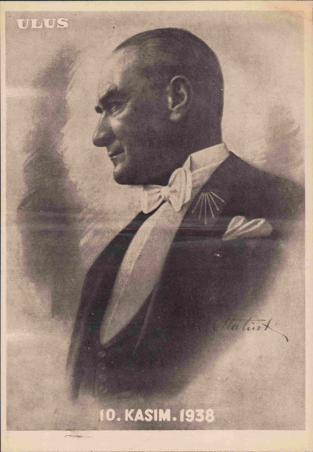 Atatürk portresi, Ulus Gazetesi hediyesi, 10 Kasım 1938 yazılı, Atatürk'ün baskı imzası detaylı, 28x41