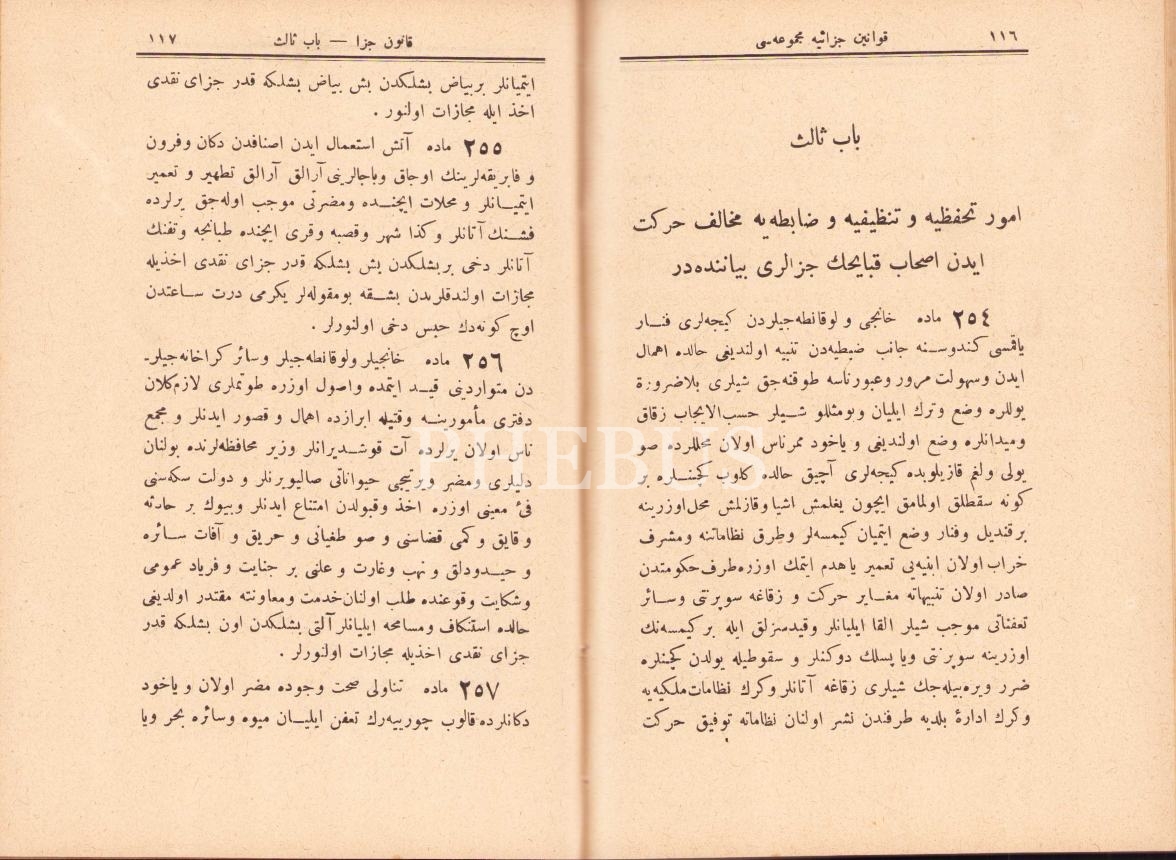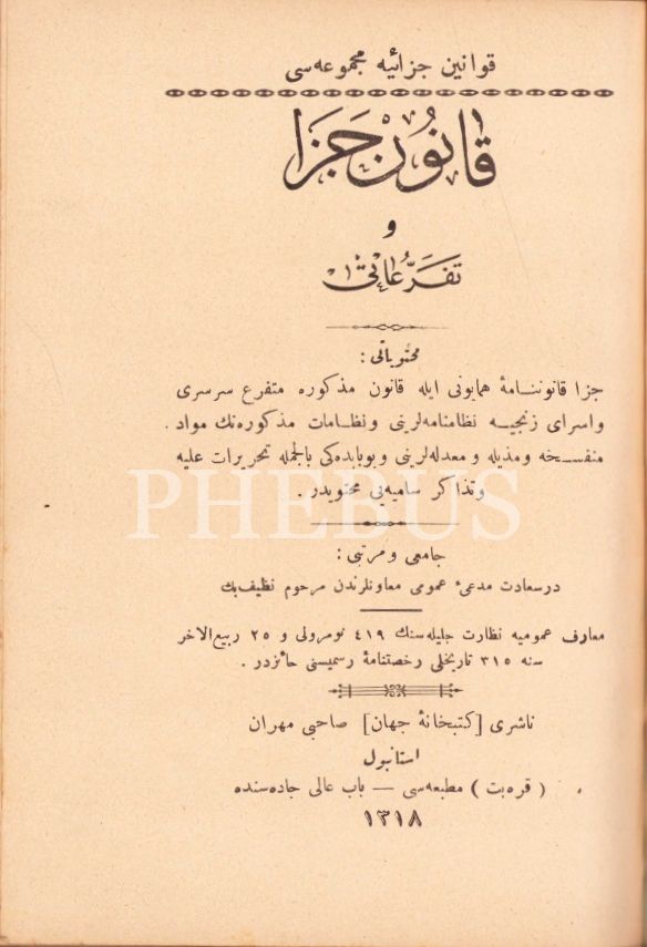 ve Kânûn-ı Cezâ ve Teferruâtı, Nazif Bey, Karabet Matbaası, İstanbul 1318, 149 s.,14x20 cm, cildi yıpranmış haliyle