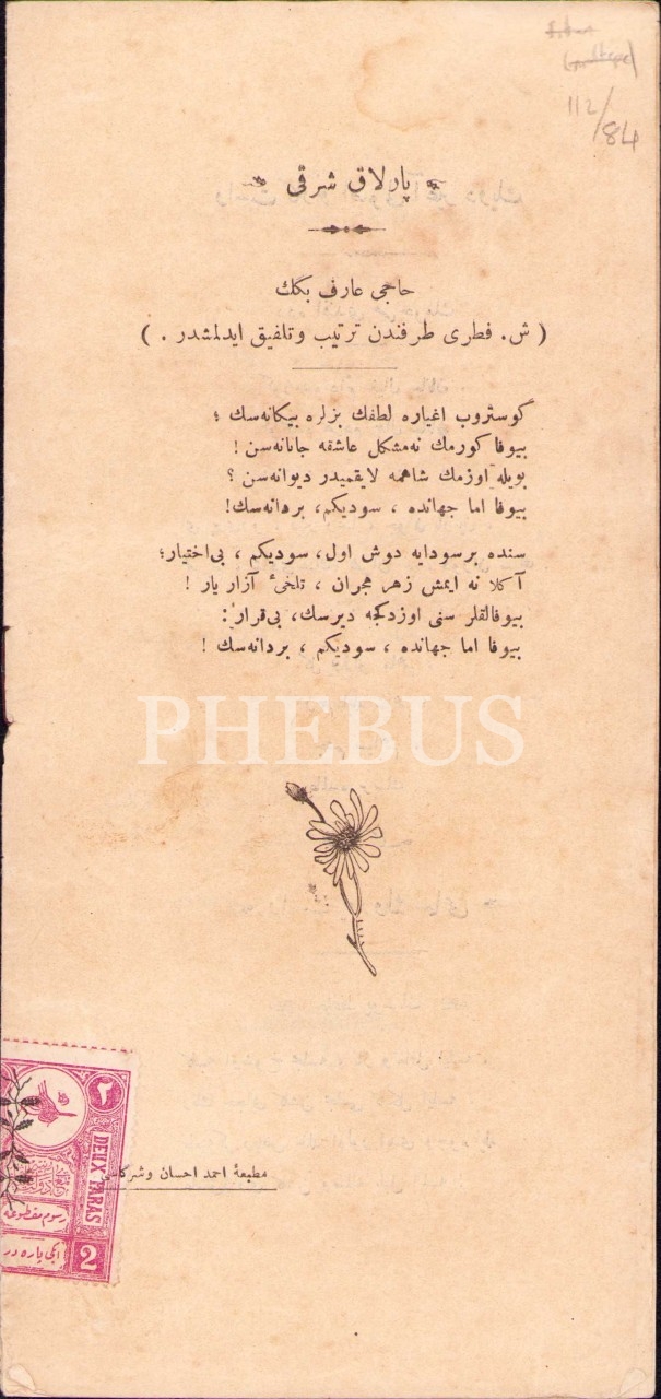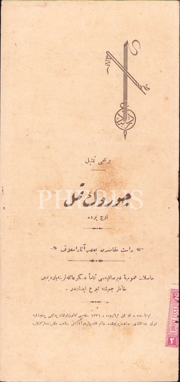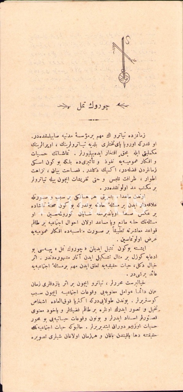 Birinci Cihan Harbi Esnâsında 1916'da Darülbedayi'de Halka Açık Sahnelenen İlk Oyun Olan "Çürük Temel"in Osmanlıca Broşürü, 12 sayfa, 12x25 cm