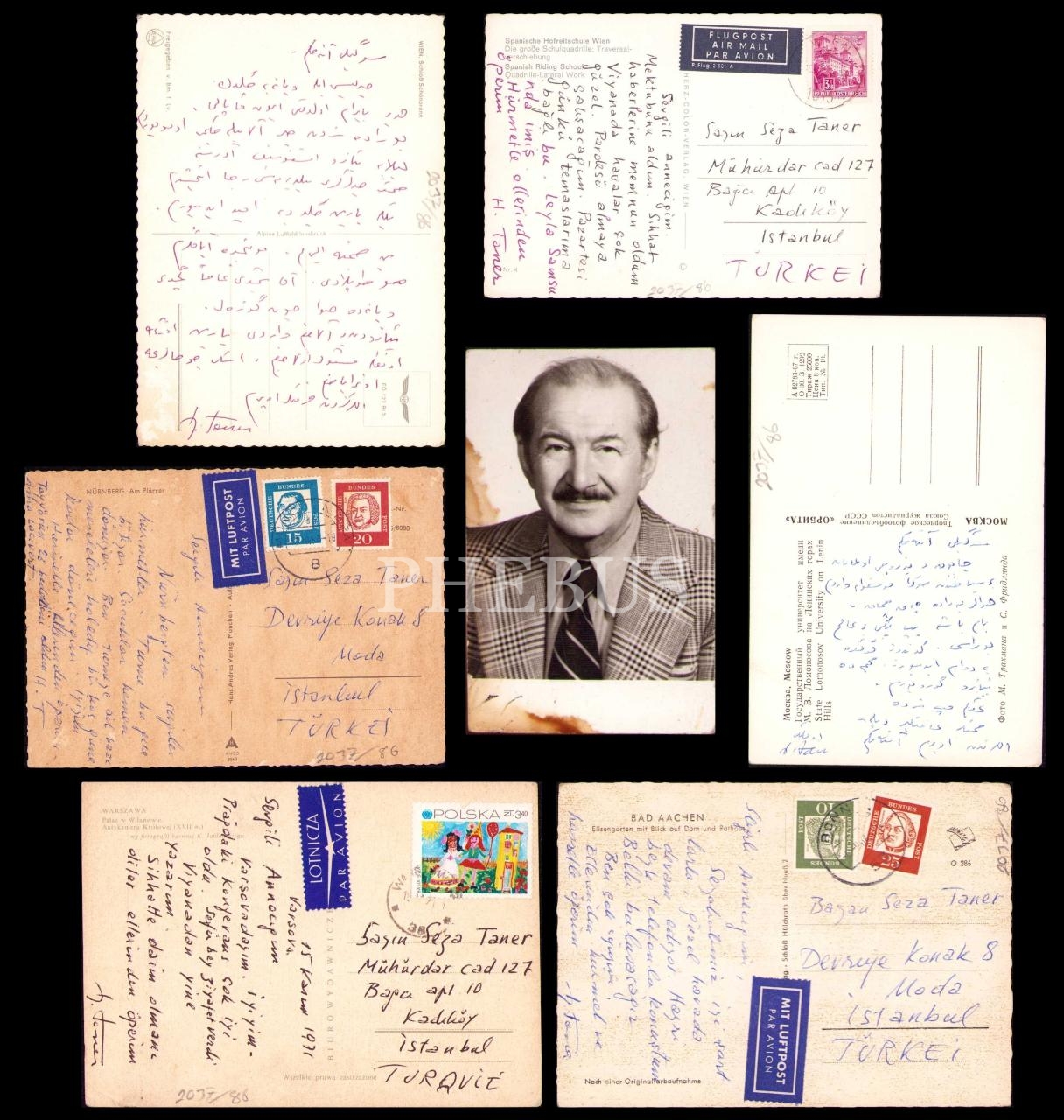 Haldun Taner'in Annesi Sezâ Taner'e İthafen İmzaladığı Fotoğrafı ile Yurtışından Annesine Gönderdiği Beş Adet Kartpostal, fotoğraf 5x7 cm