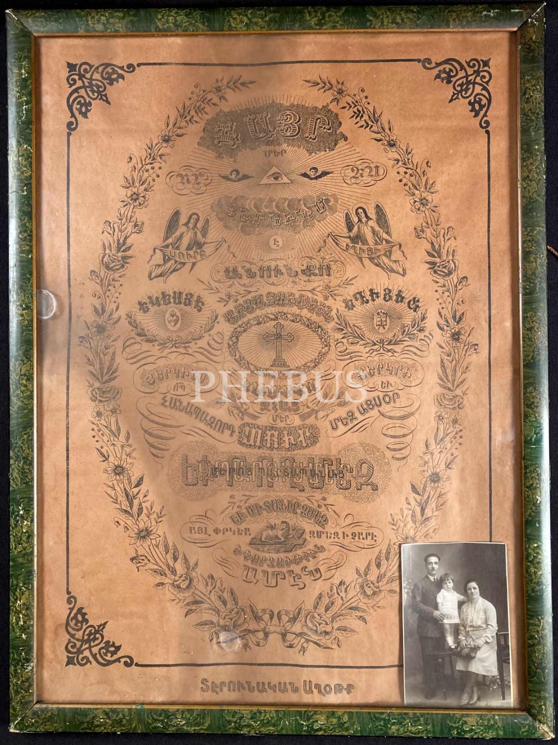 Ermenice "İsa'nın Duası" Afişi, içerisinde bir aile fotoğrafı mevcut, çerçeveli, 45x60 cm