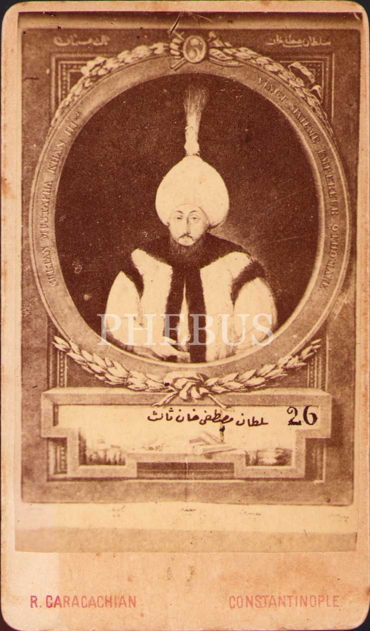 Ermeni Fotoğrafçı R. Caracachian'ın Hazırladığı Osmanlı Sultanları Serisinden "Sultan Üçüncü Mustafa", Constantinople, kartvizit boy 7x10 cm