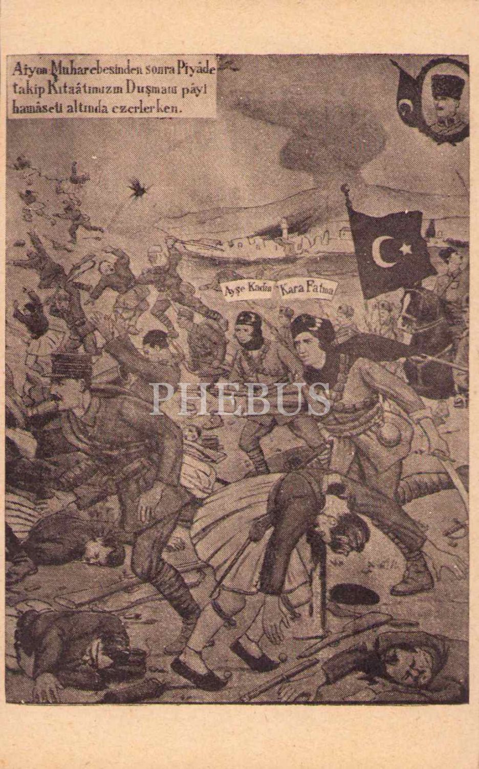 Afyon Muharebesinden Sonra Piyade Takip Kıtaatmızın Düşmanı Pây-i Hamaseti Altında Ezerken, Kara Fatma ve Ayşe Kadın, Kurtuluş Savaşı, 9x14 cm