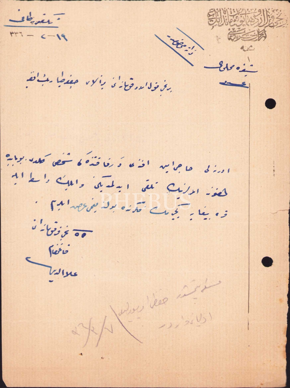 55. Fırka Kumandanı Kaymakam Alaedddin Bey Tarafından Birinci Kolordu Kumandanı Cafer Tayyar Paşa'ya Yazılmış Şifreli Osmanlıca Belge, 1336 târihli, 15x20 cm