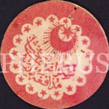 Müdafaa-i Milliye Cemiyeti Vinyeti, üzerinde Osmanlıca "Şükrâne-i Semahat Müdafaa-i Milliye" yazmakta, çapı 3 cm