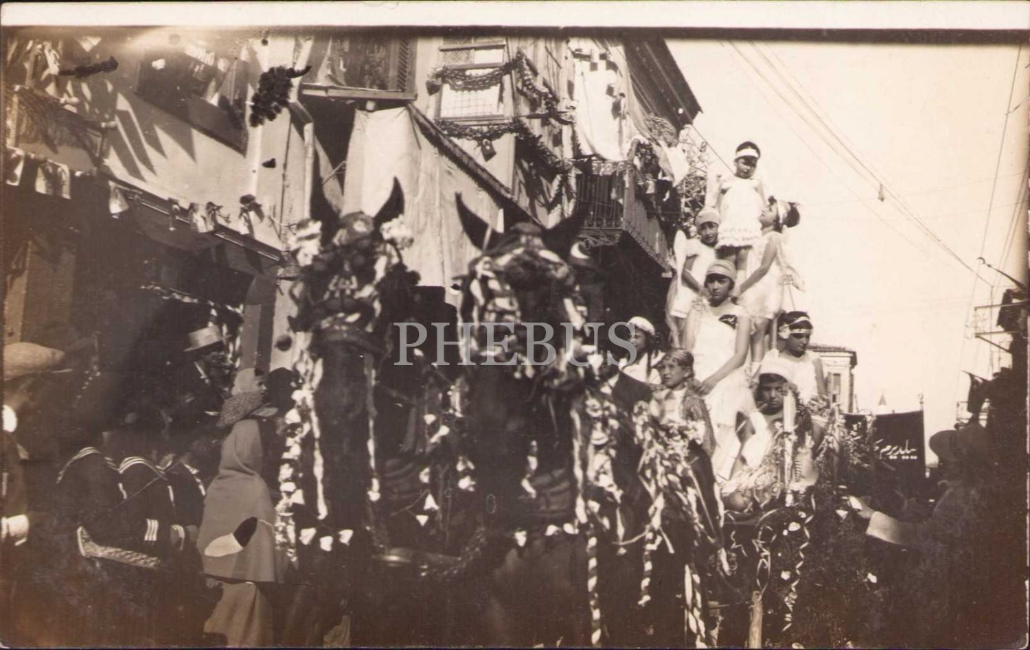 İzmir'de Kurtuluş Kutlamaları, arkada Osmanlıca Yıldırım Mektebi flaması görülmekte