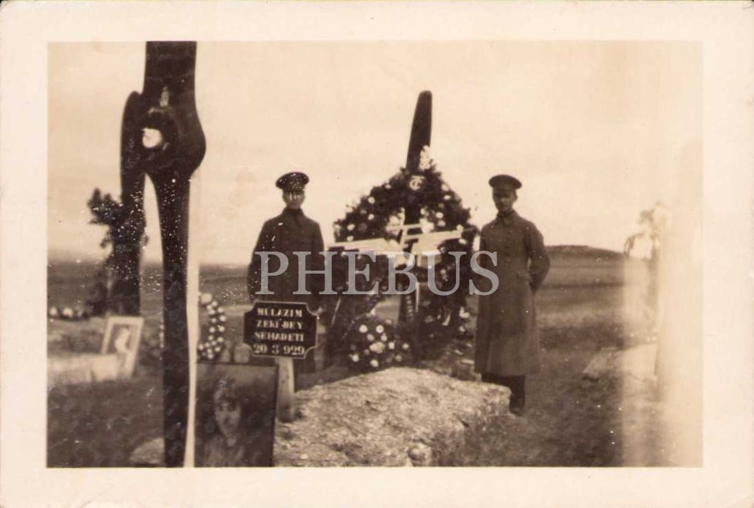 1929 Yılında Şehit Olan Tayyareci Mülazım Zeki Bey'in Eskişehir'deki Mezarı Başındda İki Asker, 10x7 cm