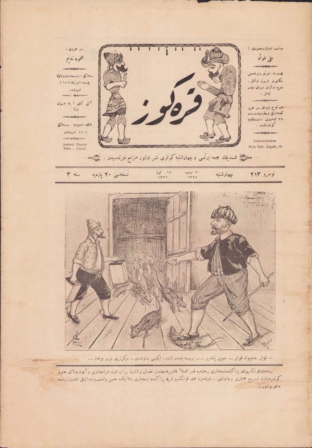 Osmanlı Karagöz Gazetesi, 1328 tarihli, Osmanlıca, 4 sayfa, 28x40cm