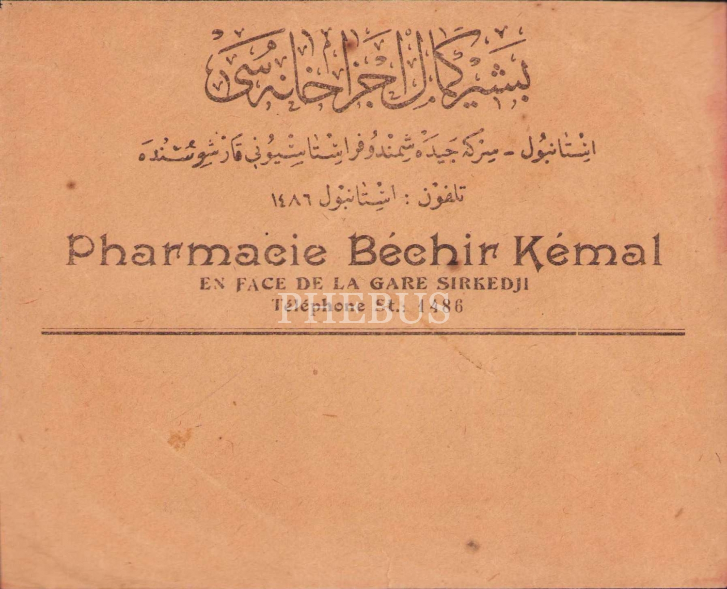 Osmanlıca ve Fransızca Beşir Kemal Eczanesi Zarfı, Sirkeci Garı'nda, İstanbul, 16x13 cm