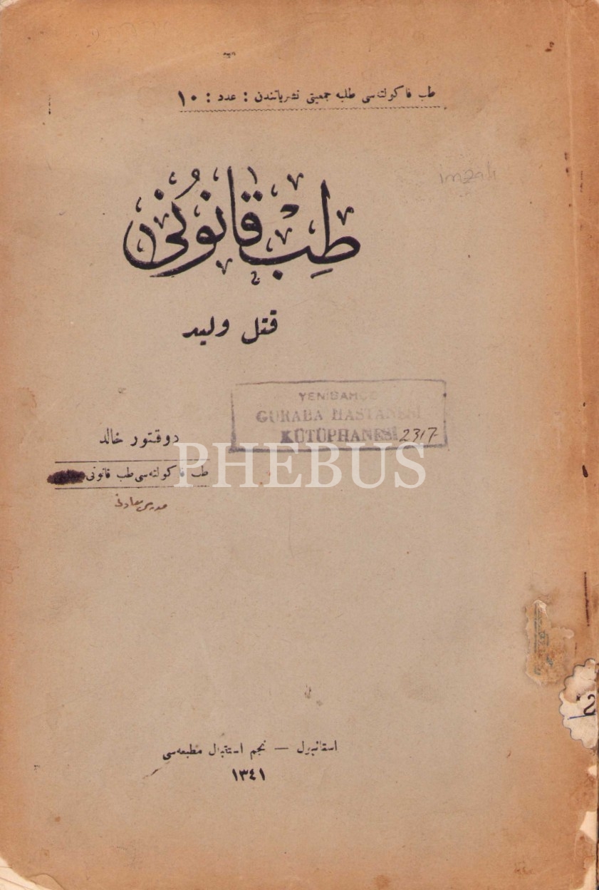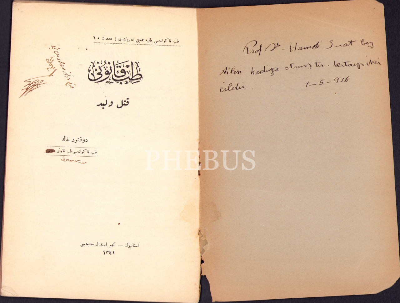 Osmanlıca "Tıp Kanunu", Yazarı Tıp Fakültesi Tıp Kanunu Muallimi Doktor Hâlid'den İthaflı ve İmzalı, İstanbul, Necm-i İstiklal, İlk Cild, 1341, 104 sayfa, 15x23 cm