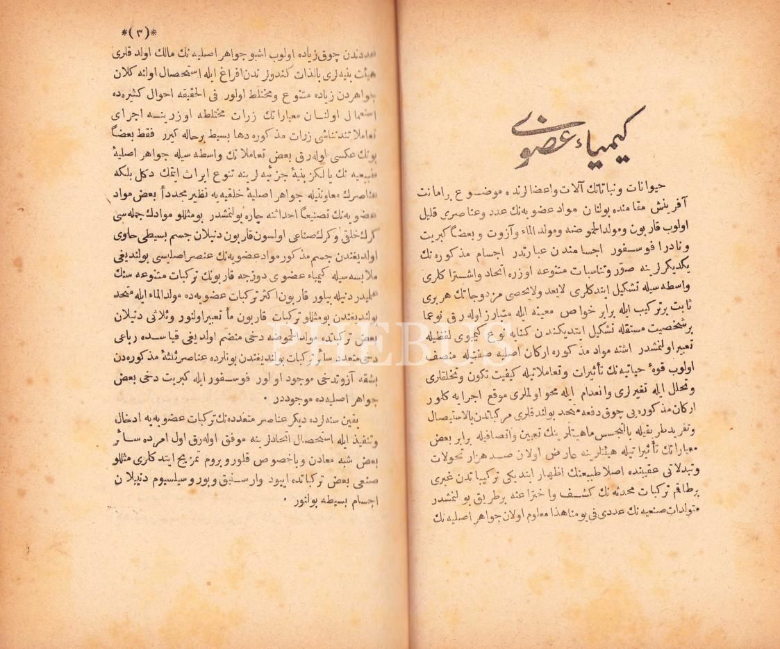 Osmanlıca "Kimya-yı Uzvi", 652 sayfa, eserin künyesi mevcut değil, 16x24 cm